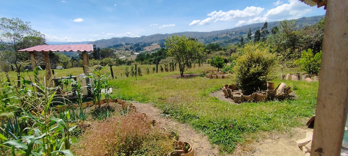Alma Verde không chỉ là một nơi để ở. Đó là ngôi nhà nông thôn của bạn ở một vị trí trong mơ; một nơi trú ẩn tự nhiên, nằm trong một môi trường tự nhiên đặc quyền, rất gần trung tâm đô thị của Ráquira. Được bao quanh bởi thiên nhiên tươi tốt, cây ăn quả và hoa, tràn ngập không khí với hương thơm và màu sắc; một ốc đảo yên bình thực sự. Nhà có một phòng ngủ lớn, một giường cỡ king và một giường sofa, cũng như một phòng tắm đầy đủ. Nó cũng có một nhà bếp với lò đốt củi, phòng ăn và phòng khách trong một môi trường duy nhất