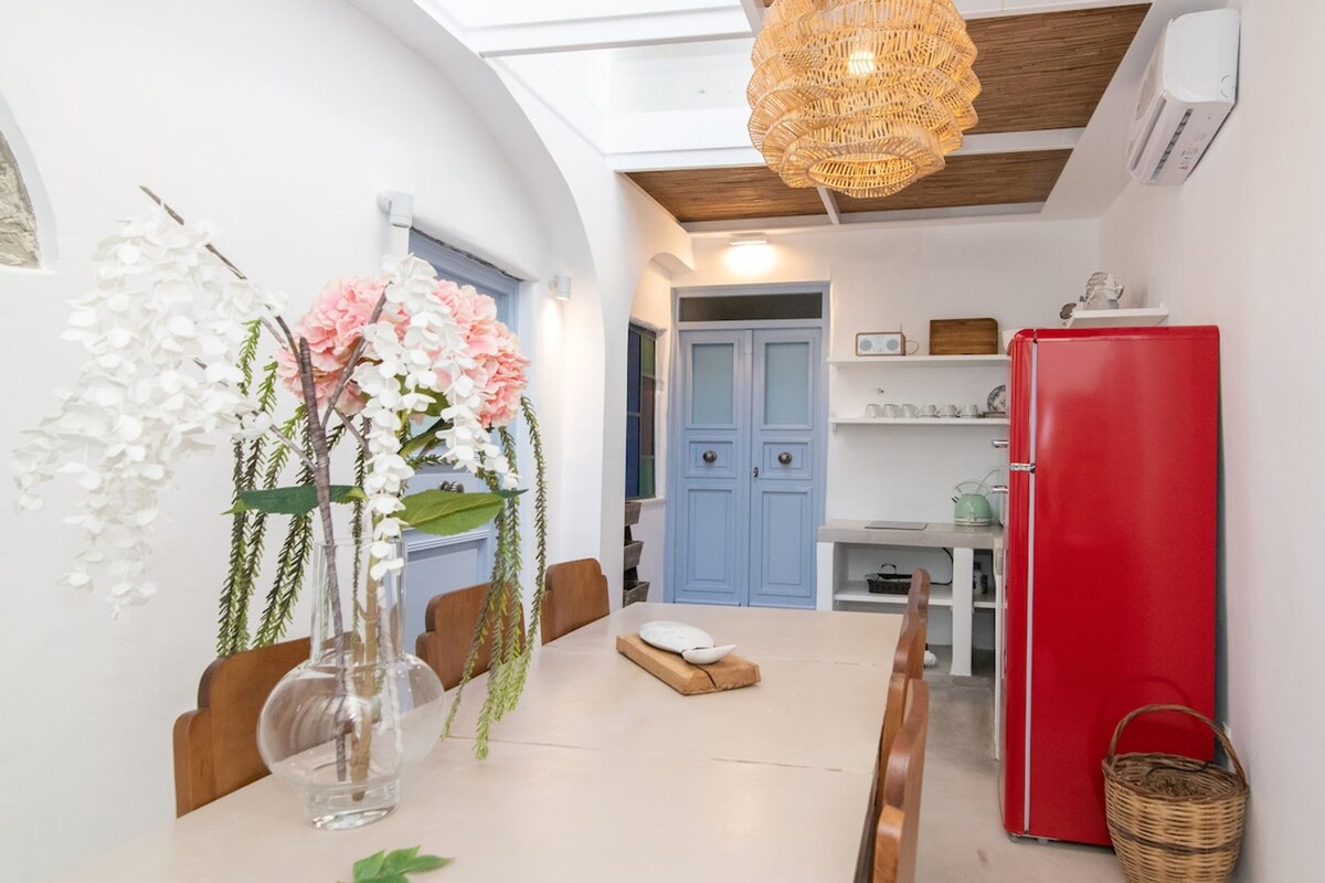 Ngôi nhà Cycladic tuyệt vời này nằm ở trung tâm thành phố Tinos, chỉ cách Nhà thờ Holly Mary 5 phút đi bộ. Sự gần gũi với nhà hàng, quán cà phê và sân chơi sẽ làm cho kỳ nghỉ của bạn trên đảo trở thành một nhiệm vụ dễ dàng và phù hợp với các gia đình lớn hoặc một nhóm bạn bè.