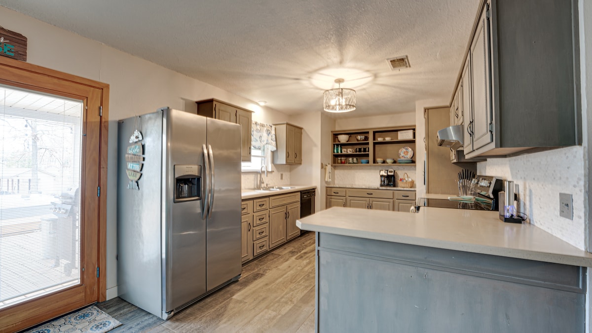 352 yards from the boat launch, neighborhood private boat ramp and parking viewed from the front porch.Newly remodeled home with farm/cabin feel. Pine & Blue spruce wrapped inside & out. Fishermen in tournaments will have quick access. When your fishing is complete at the end of the day, you don't have a long wait to pull in your boat, park it any way you like at the cabin, go in and take a hot bath and eat. We are very dog friendly, fully fenced yard front and back.