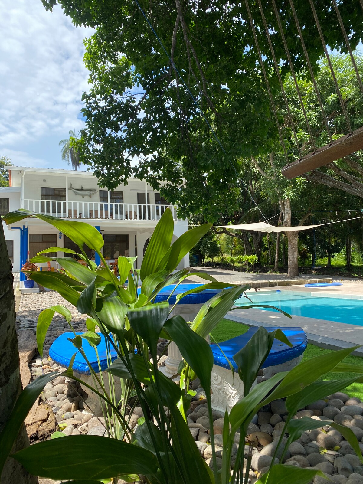 Ngôi nhà trên cây lấy cảm hứng từ Bali độc đáo nhìn ra một con sông theo mùa, vườn bướm và vườn cây ăn quả nhiệt đới. Được xây dựng với gỗ xẻ có nguồn gốc địa phương, chủ yếu được xay xát trong nhà và được bổ sung với đồ lưu niệm và các điểm nhấn bằng gỗ được chạm khắc được thu thập trong khi khám phá Indonesia và Thái Lan. Đây là thiên đường của chim bạch dương với các chuyến thăm hàng ngày của vẹt đuôi dài, vẹt và toucans đỏ tươi. Nằm cách khu lướt sóng đẳng cấp thế giới, nhà hàng bên bờ biển và cuộc sống về đêm ở Playa Hermosa và Playa Jaco một quãng lái xe ngắn.