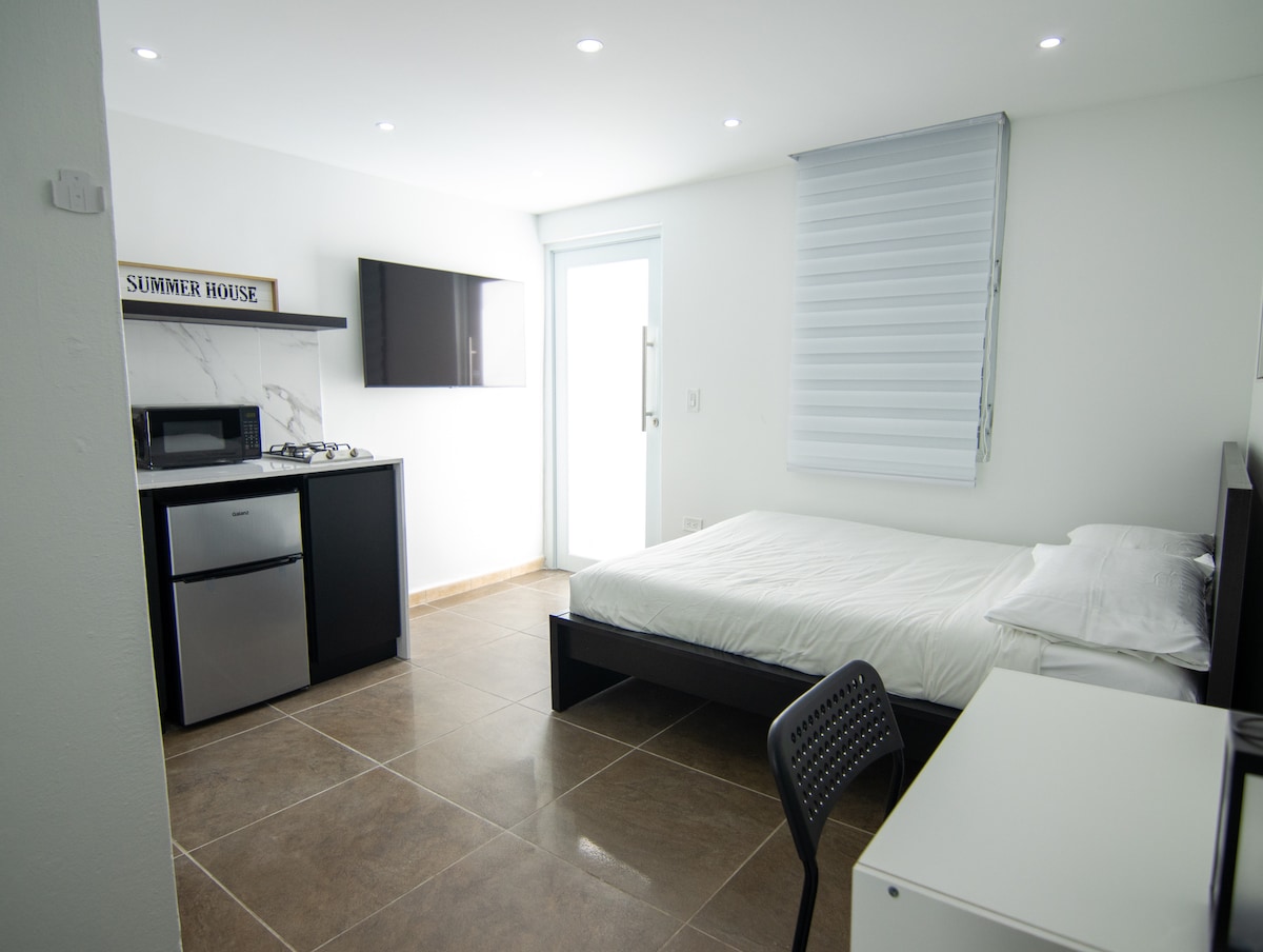 Trải nghiệm sự thư giãn tuyệt vời và sự quyến rũ của hòn đảo trong studio được thiết kế đẹp mắt này! Tận hưởng một chiếc giường queen thoải mái, một phòng tắm đầy đủ và một nhà bếp đầy đủ tiện nghi cho tất cả các nhu cầu nấu ăn của bạn. Bước lên sân thượng của bạn để tận hưởng khung cảnh vườn yên tĩnh, hoàn hảo cho một tách cà phê buổi sáng hoặc thư giãn buổi tối. Nệm hơi có sẵn để đón tiếp khách thứ ba chỉ với $ 20 mỗi ngày. Kỳ nghỉ hoàn hảo của bạn tại Puerto Rico đang chờ đón bạn!