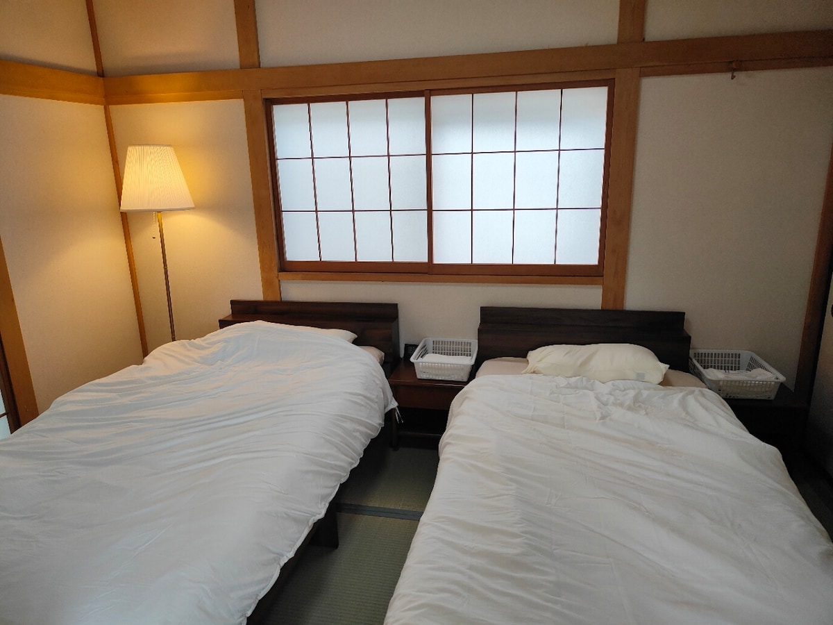 A newly built private house, exclusively reserved for your group (up to 6 guests). Not shared with other guests. 1st floor: living & dining area, large kitchen, and workspace for remote work. 2nd floor: three bedrooms (1 queen bed, 2 single beds, and 2 futon sets). Parking for 1 car on site. Free parking is available about a 1-minute walk away for additional cars. If you have any questions or would like local recommendations, please feel free to contact us.