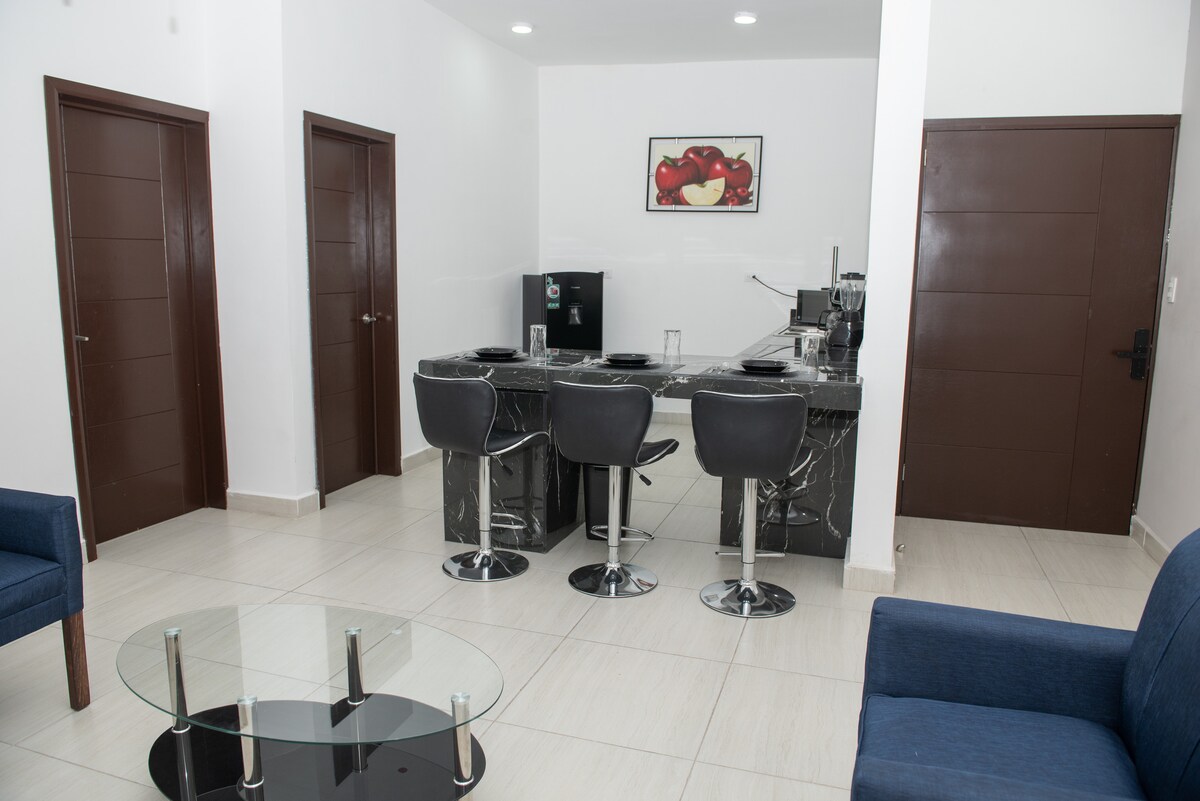 Đắm chìm trong sự thoải mái của căn hộ 2 phòng ngủ 2 phòng tắm độc quyền của chúng tôi. Giường cỡ King và Queen, Wi-fi và 3 TV. Tận hưởng sự thoải mái của một phòng khách thoải mái, nhà bếp được trang bị các thiết bị, 3 Mini Split cho thời tiết hoàn hảo, trung tâm giặt ủi và 2 chỗ đỗ xe. Trong các khu vực chung, sử dụng hồ bơi đẹp, khu vực làm việc chung, giải trí yên tâm với bàn bi-a. Ngoài ra, hãy tận dụng cơ hội để chơi padel và tận hưởng một trải nghiệm tuyệt vời.