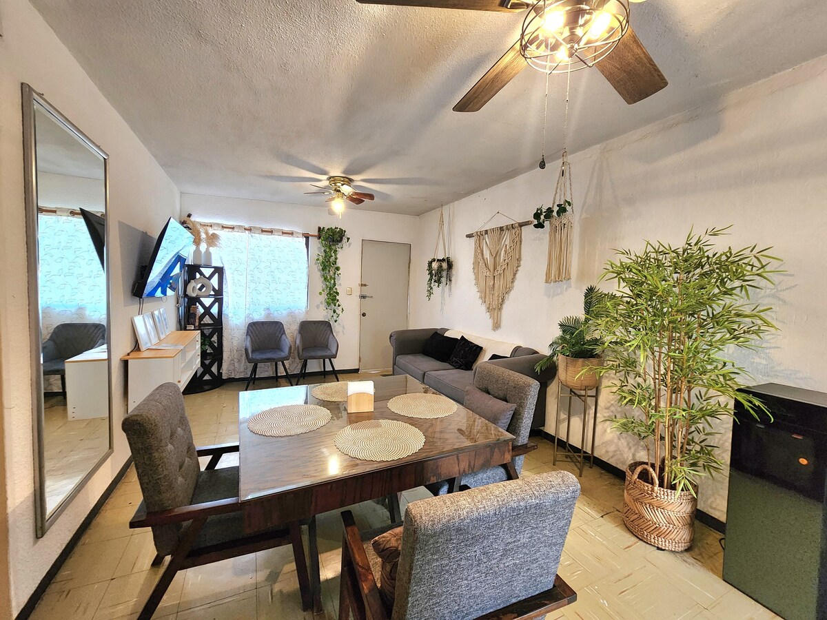 ⚠️ Airbnb của chúng tôi là một căn hộ RIÊNG có MỘT PHÒNG NGỦ với MiniSplit cho MỘT CẶP VỚI: - Rạp chiếu phim trong phòng và Alexa với Spotify Premium - 55' trong phòng khách với Chromecast và PS4 🎮 -🎬 HBO Max, Disney+, ClaroVideo, do chính chúng tôi cung cấp. -Estacionamiento un cajón exclusido không CÓ MÁI CHE 🏁 - không CÓ INVOURAMOS - Sân bay 5 phút | Bến xe buýt 5 phút - Bệnh viện cách 7 phút - Trung tâm mua sắm, PHÒNG TẬP THỂ DỤC và nhà hàng 🍴 cách 3 phút - Oxxo và Nhà thuốc ở góc phố