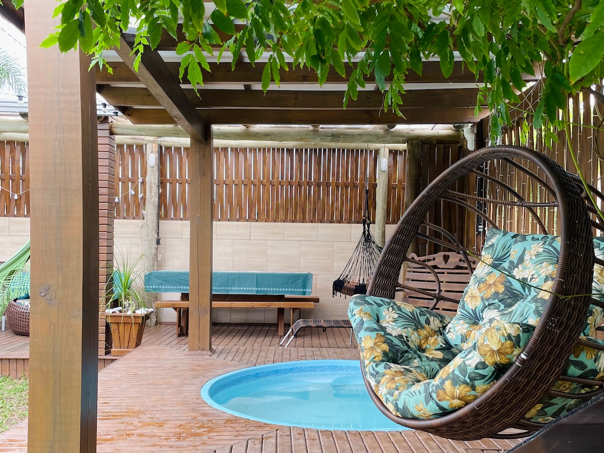 Hãy tưởng tượng bạn thức dậy với âm thanh của sóng biển và cảm nhận làn gió biển chỉ cách Nhà gỗ vài bước chân. Đây là nơi nghỉ ngơi hoàn hảo cho những ai tìm kiếm sự yên tĩnh và nhiều ánh nắng mặt trời! Nó có một nhà bếp đầy đủ tiện nghi, hoàn hảo cho bữa ăn của bạn. Với bồn tắm đôi và mát-xa thủy lực, trong khu vực ngoài trời có tiệc nướng riêng. Chúng tôi có sân hiên an toàn, với hồ bơi chung. Cách biển 100 mét và cách trung tâm thành phố Torres/RS 15 phút. Hãy đến với những giây phút khó quên! Đặt trước và sống những ngày đẹp trời trên bờ biển gaucho!
