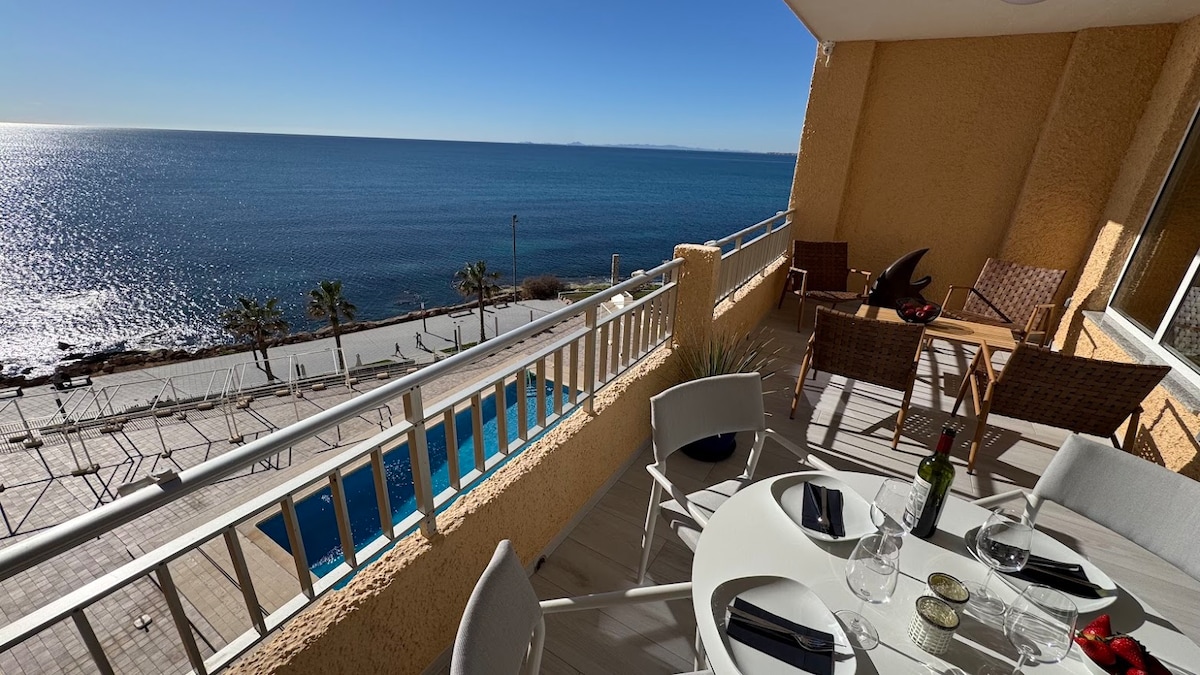 Căn penthouse rất nắng và mới được cải tạo ngay trên đươ ̀ ng dạo bô ̣ với tầm nhìn tuyệt đẹp ra biển Địa Trung Hải và hồ bơi. Căn hộ có một phòng khách rộng rãi và 2 phòng ngủ với lối đi thẳng ra một sân thượng lớn, nơi bạn có thể nghỉ ngơi, tắm nắng và ăn trưa. Căn hộ được trang bị đầy đủ (ga trải giường, khăn tắm, đồ nhà bếp...) với WIFI và điều hòa nhiệt độ. Nằm trong khu vực du lịch nhất. Do các quy định của Tây Ban Nha, chúng tôi sẽ cần giấy tờ tùy thân có ảnh hoặc hộ chiếu được tải lên nền tảng Airbnb trước ngày nhận phòng.