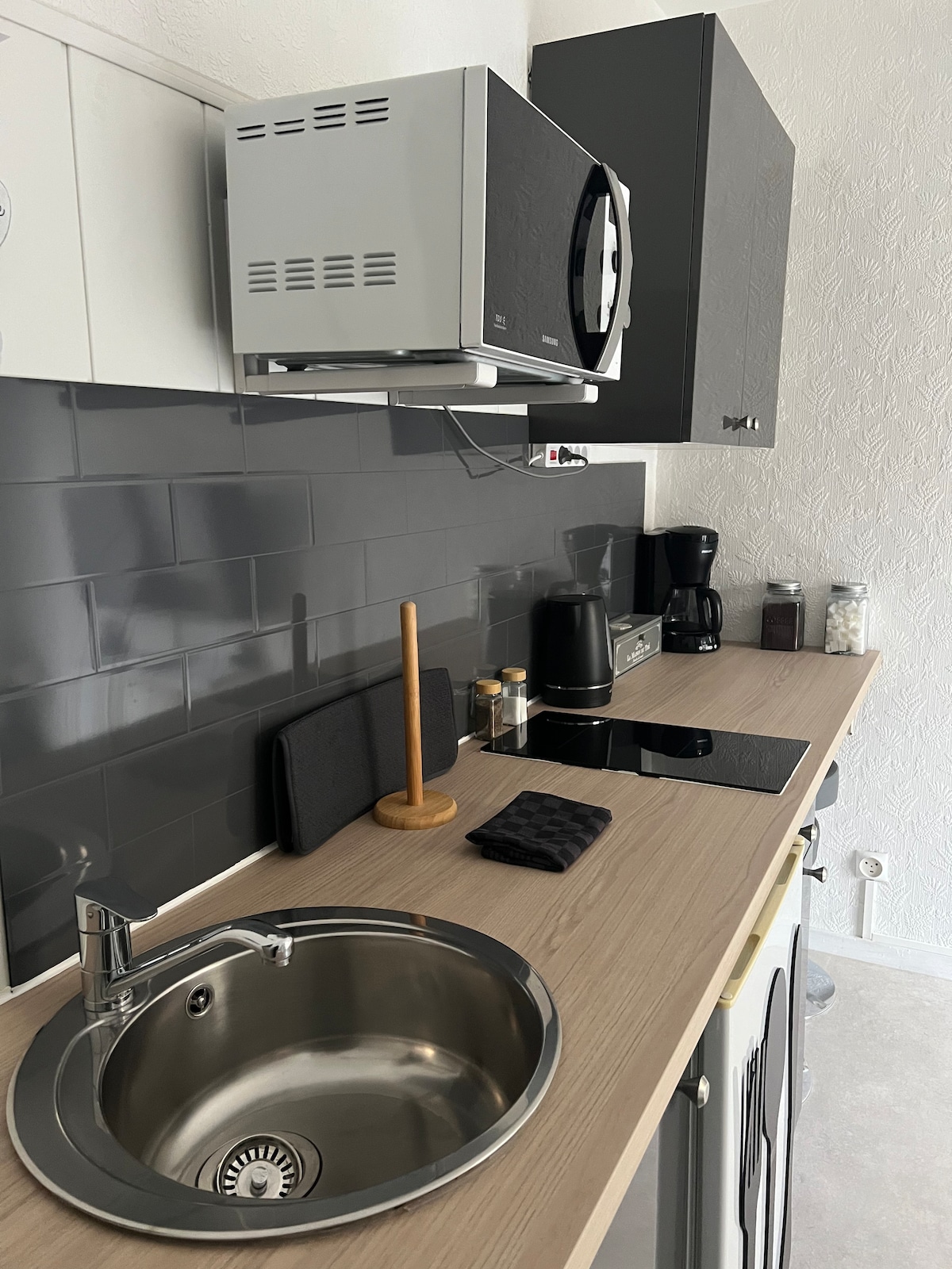 Gần đây đã được cải tạo, với vật liệu chất lượng, bạn sẽ tìm thấy một chiếc giường 160 cm, phòng tắm vòi sen riêng. Không có khăn tắm. Họ trả thêm tiền. Có lò vi sóng và ấm đun nước với cà phê hòa tan trong nước và trà bạc hà. Có bàn và ghế trên boong. Tôi sẽ cung cấp cho bạn một tách cà phê thực sự nếu bạn muốn 🤗 Có thể sử dụng bằng chìa khóa Đỗ xe an toàn Cài đặt thật bình dị!