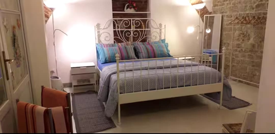 Camera doppia con letto a due piazze,bagno privato separato dalla camera da un antibagno La camera è fornita di armadio a muro con cassaforte interna e cassettiera fornita di specchio. Disponibile TV via cavo e canele Netflix (messo gentilmente a disposizione degli ospiti) fornisco set biancheria per bagno (doccia,mani e viso ,intimo) fornisco set detergenti ( mani,doccia,intimo) set per barba e pulizia orale coffe machine and mini fridge Non forniamo servizio colazione ,ascensore non presente