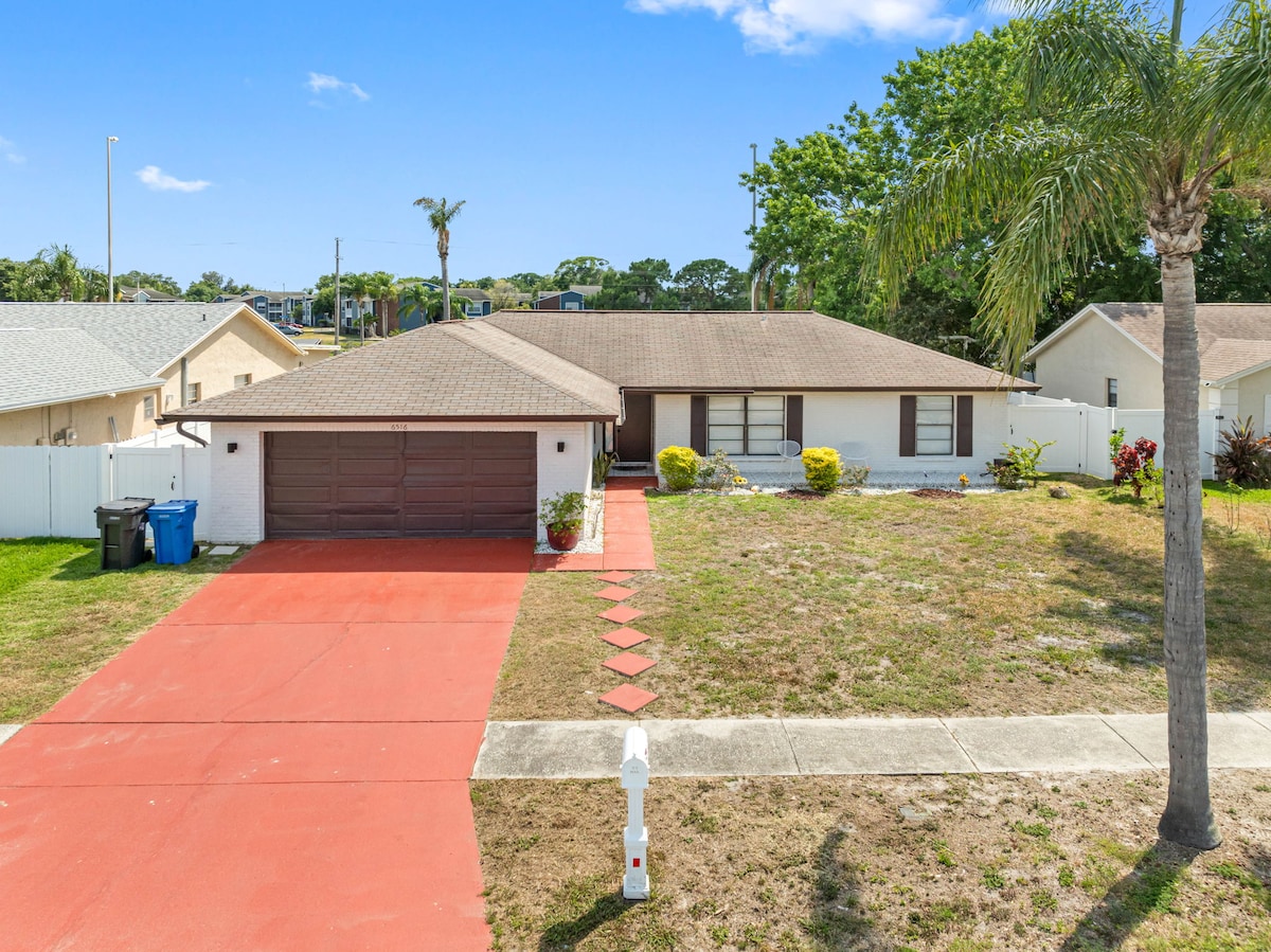 Ốc đảo giải trí này giúp nâng cao trải nghiệm nghỉ dưỡng Tampa-Bay của bạn với WiFi, Bàn bơi và Bàn poker, Mỗi phòng đều có TV thông minh, Bộ sạc USB, Bộ điều hòa không khí mới, Màn hình trong sân hiên có bàn bóng bàn - Bảng phi tiêu - Lò nướng, Hàng rào bảo vệ sự riêng tư ở sân sau. 3 phòng ngủ, 2 phòng tắm đầy đủ, nệm 1 không khí, đường lái xe 4 toa. Nằm gần sân bay, sân vận động RJ, International Plaza, Ben T David Beach, Clearwater Beach, Busch Gardens và Adventure Island. Sách giải trí trong nhà với bãi biển, công viên, nhà hàng và mua sắm.