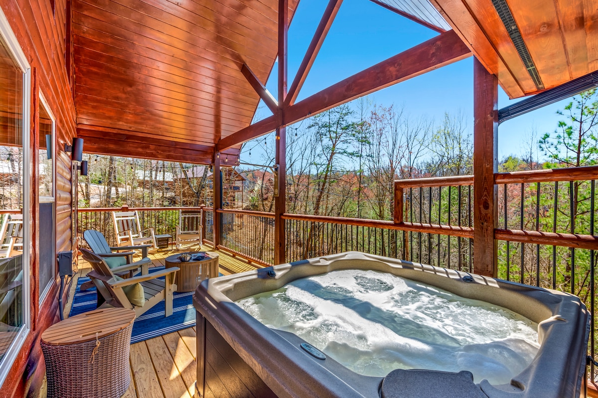 CABIN ẤM CÚNG! Bồn tắm nước nóng 65", Jacuzzi, Lò sưởi!