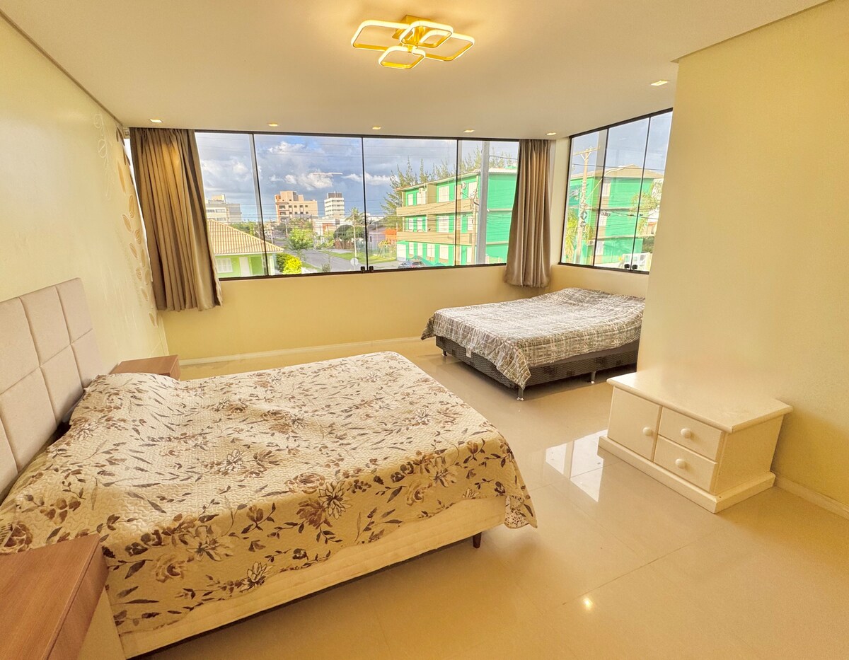 Tận hưởng bờ biển Tramandaí trong một căn hộ hướng biển tuyệt vời, nằm ở tầng 12, thông gió tốt và có tầm nhìn tuyệt đẹp ra bãi biển. Chỗ ở có mọi thứ bạn cần cho một kỳ nghỉ yên bình: internet, ghế bãi biển, truyền hình cáp, thiết bị, ga trải giường và khăn tắm. Nằm cách một loạt các quán bar và nhà hàng bên bờ biển chỉ vài bước chân và cách trung tâm thành phố khoảng 700 m.