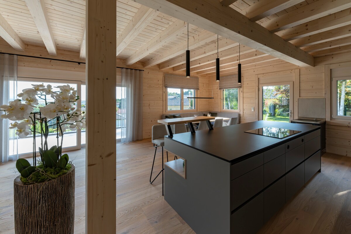 Khách yêu thích chỗ ở cho thuê có những tiện nghi như Nhà bếp, Wi-fi và Bể bơi tại Traun