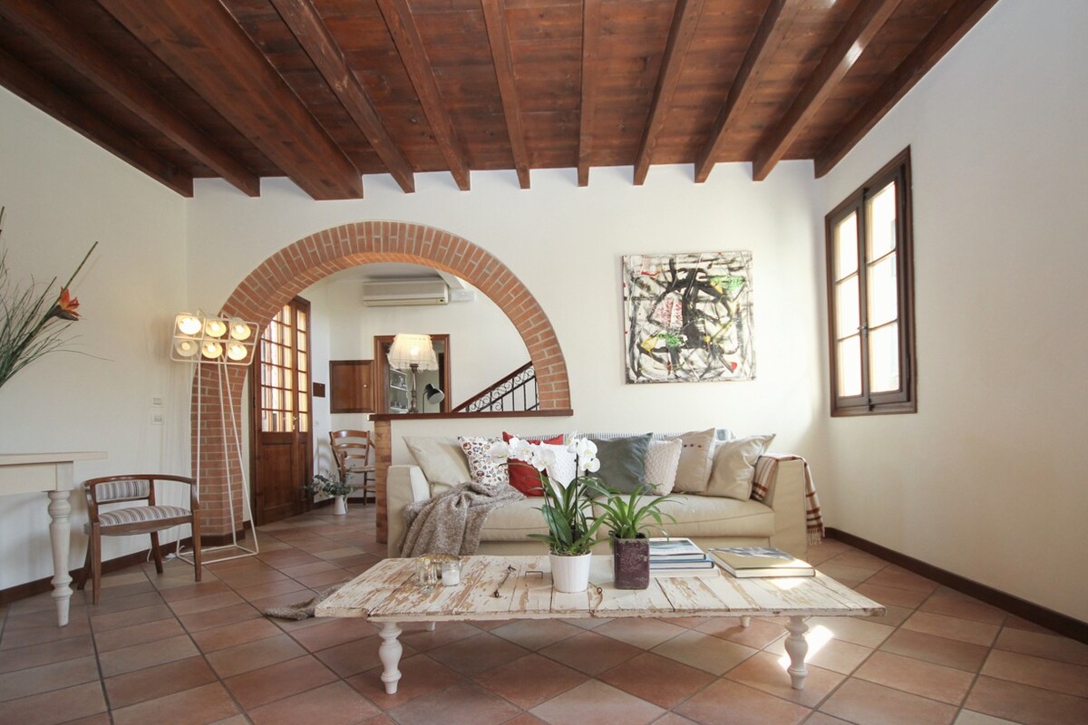 The residence "Ai Celtis" is an elegant Nineteenth cottage in local original stone, carefully restored and furnished with every modern confort, surrounded by a big flower garden and mature trees. The inner and outer walls are with exposed stone, the ceilings decorated with original wooden beams.Available to guests there are big outdoor spaces fitted with a romantic pergola with a swing, tables, deckchairs and in the garden a play corner for the children. Near Teolo, Padova 40 Km to Venice