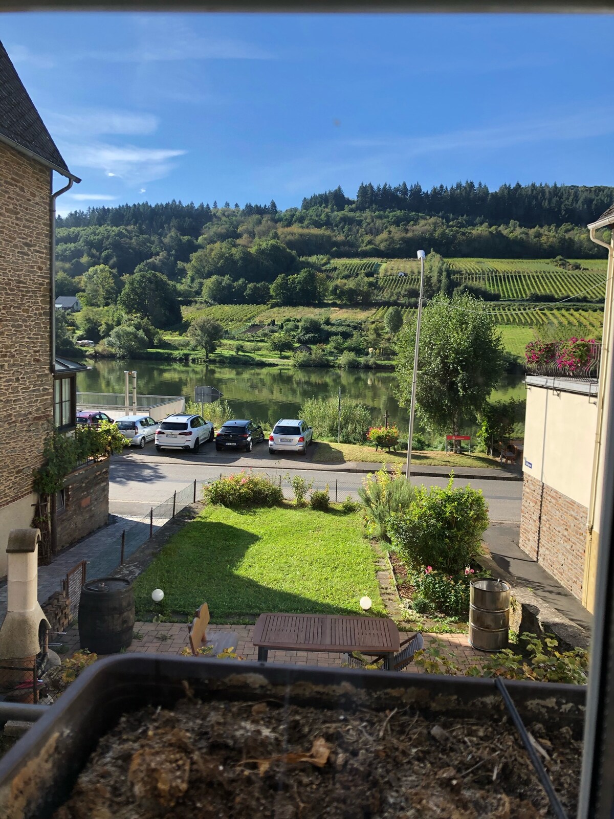 Chào mừng bạn đến với những vườn nho, thiên nhiên và nhà hát vòng tròn! Nội thất chất lượng cao, khoảng 90 m2 nằm ở Trier-Olewig, khu rượu vang cũ của thành phố. Từ sân thượng hướng đông nam rộng 17 m2, tầm nhìn ra Ngoại thất. Ngôi nhà một gia đình tách biệt nằm trong một con phố cụt yên tĩnh với chỗ đỗ xe miễn phí. Gần thành phố và ở giữa một mảnh đất rộng 1200 m2 với giường và cây cối, trong đó đàn gà nhỏ của chúng tôi có gà trống Hugo ở nhà.