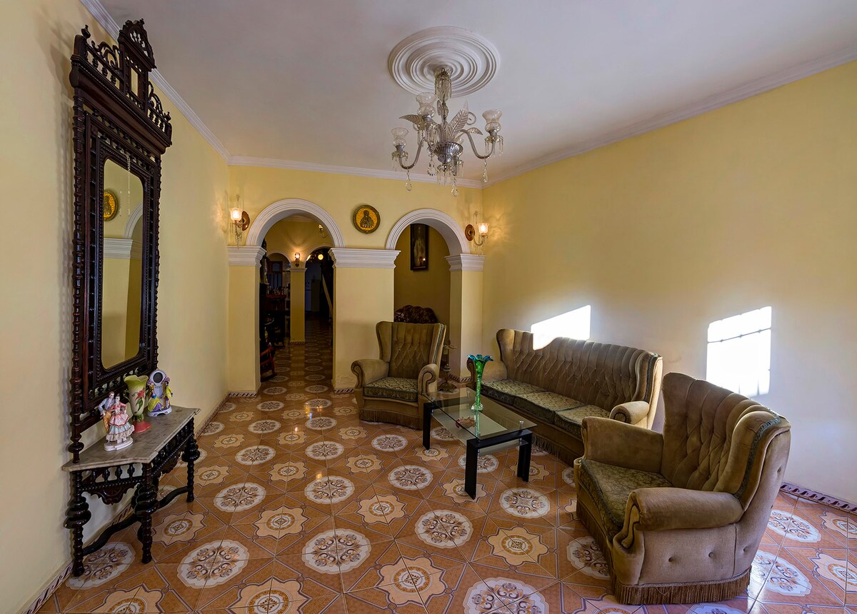 Chào mừng bạn đến với Cuba và Ngôi nhà thuộc địa của chúng tôi ở Trinidad Nhà kiểu thuộc địa trung tâm rộng lớn và đẹp Phòng thông gió và rộng rãi. Đầy đủ hình ảnh cho những cảnh quan tốt nhất. Trên sân thượng có dịch vụ ăn sáng ( không bao gồm ) rất tốt cho khách hàng. Trong không gian này, chúng tôi có tất cả các điều kiện để bạn tin tưởng vào ánh sáng và quạt trong trường hợp thiếu chất lỏng điện ngoài ra, phòng có cửa sổ lớn để thông gió tự nhiên.