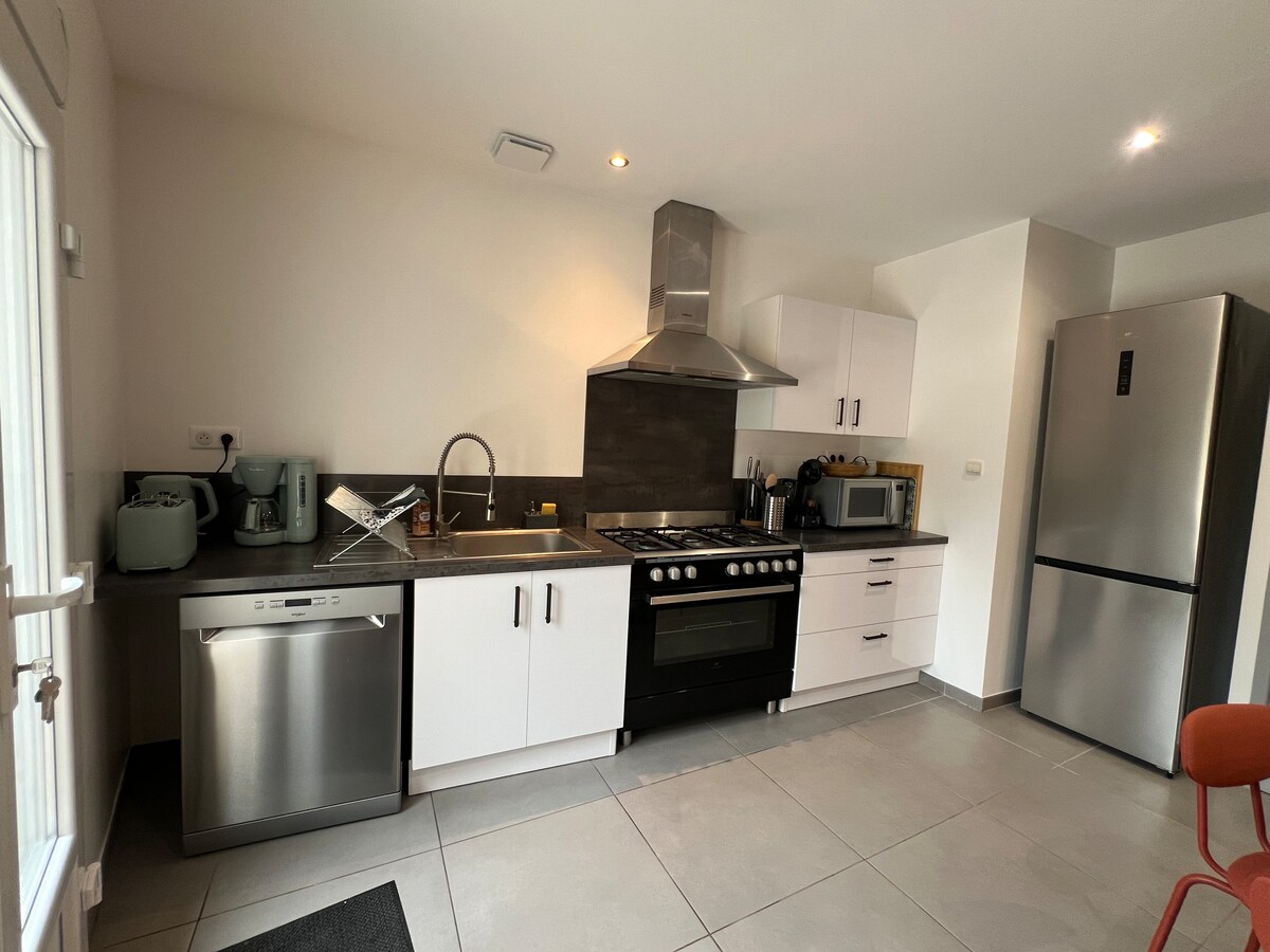 ✨Tự thưởng cho mình một kỳ nghỉ thư giãn cho hai người trong ngôi nhà hiện đại này, nằm ở vùng nông thôn. Được thiết kế cho các chuyến đi của cặp đôi, chỗ ở kết hợp sự bình tĩnh, thoải mái và thanh lịch. Căn phòng sáng sủa có cửa sổ lớn với tầm nhìn không bị cản trở ra một cánh đồng rộng lớn, mời bạn ngắt kết nối ngay khi thức dậy. Để có một khoảnh khắc thư giãn tuyệt đối, bạn có thể tận hưởng một bồn tắm spa, lý tưởng để thư giãn sau một ngày khám phá hoặc đơn giản là tận hưởng một khoảnh khắc hạnh phúc cho hai người.
