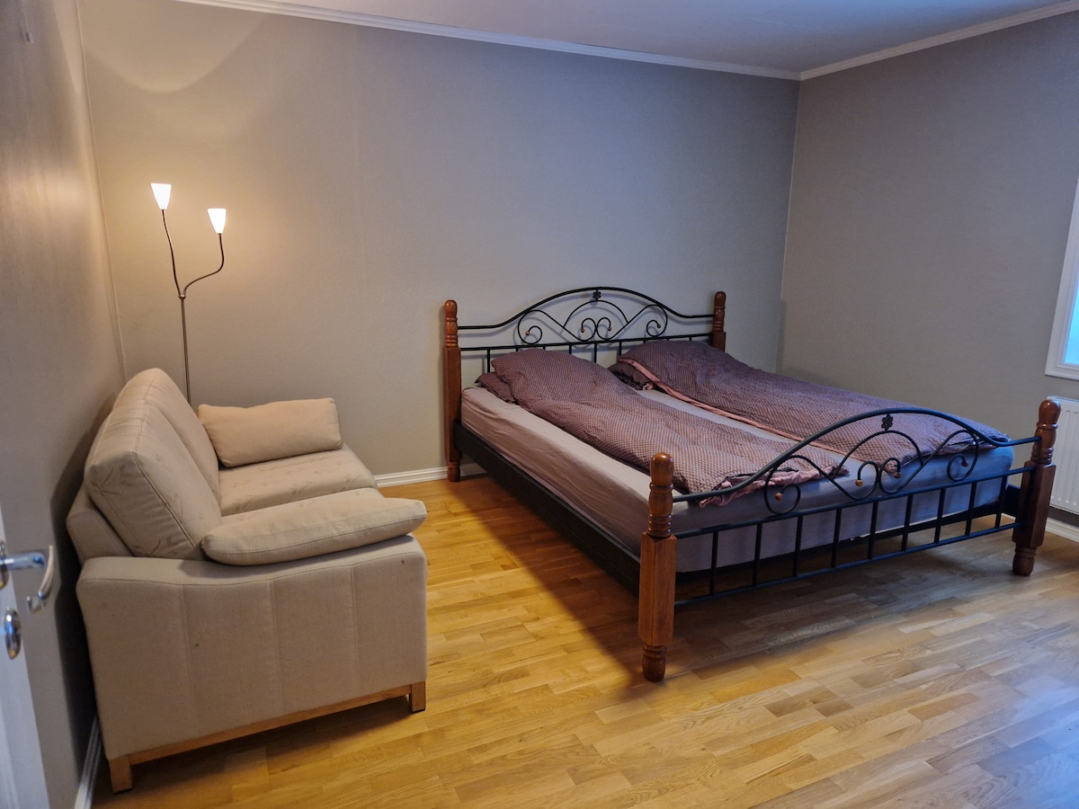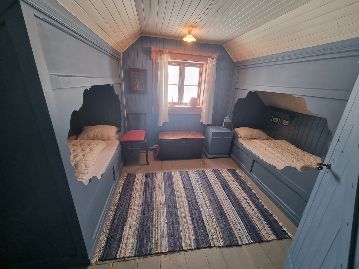 Visit a unique restored homestead from a bygone era. The location is secluded, but still short distance from Åndalsnes (3 km). Panoramic views of Romsdalseggen from the garden and a perfect starting point for visiting Trollstigen or going skiing and hiking in the Romsdal Alps. 2 bedrooms, with 2 beds in each room, 1 bed in the anteroom that you have to walk through to get to one of the bedrooms. Relax in your own private garden with outdoor furniture and a fire pit/grill.