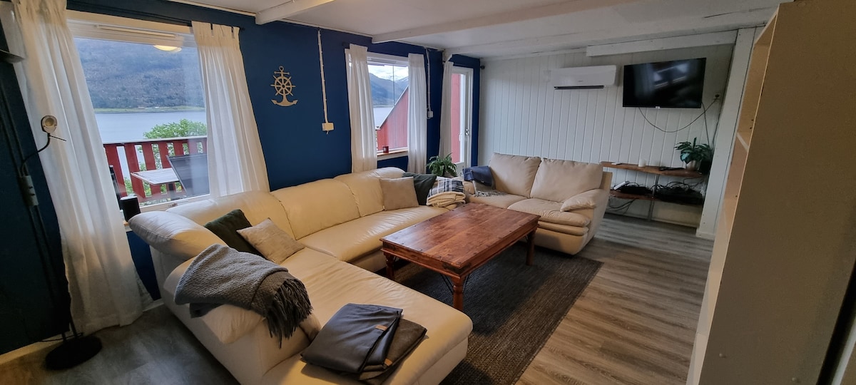 Một ngôi nhà nghỉ dưỡng rộng rãi ở một vị trí hấp dẫn và yên bình với tầm nhìn toàn cảnh tuyệt vời về Hamnesfjorden. Tận hưởng kỳ nghỉ của bạn trên sân thượng bằng gỗ lớn với tầm nhìn hướng ra vịnh hẹp! Có một bể sục ngoài trời thư giãn. Tận hưởng khung cảnh ven biển tuyệt vời xung quanh trong khi ngâm mình trong làn nước ấm, sủi bọt! Ngôi nhà nằm bên bờ biển và phía trước có một bãi biển riêng, thân thiện với trẻ em. Nó cũng có thể được tắm từ cầu tàu tại bến du thuyền ngay bên dưới ngôi nhà.