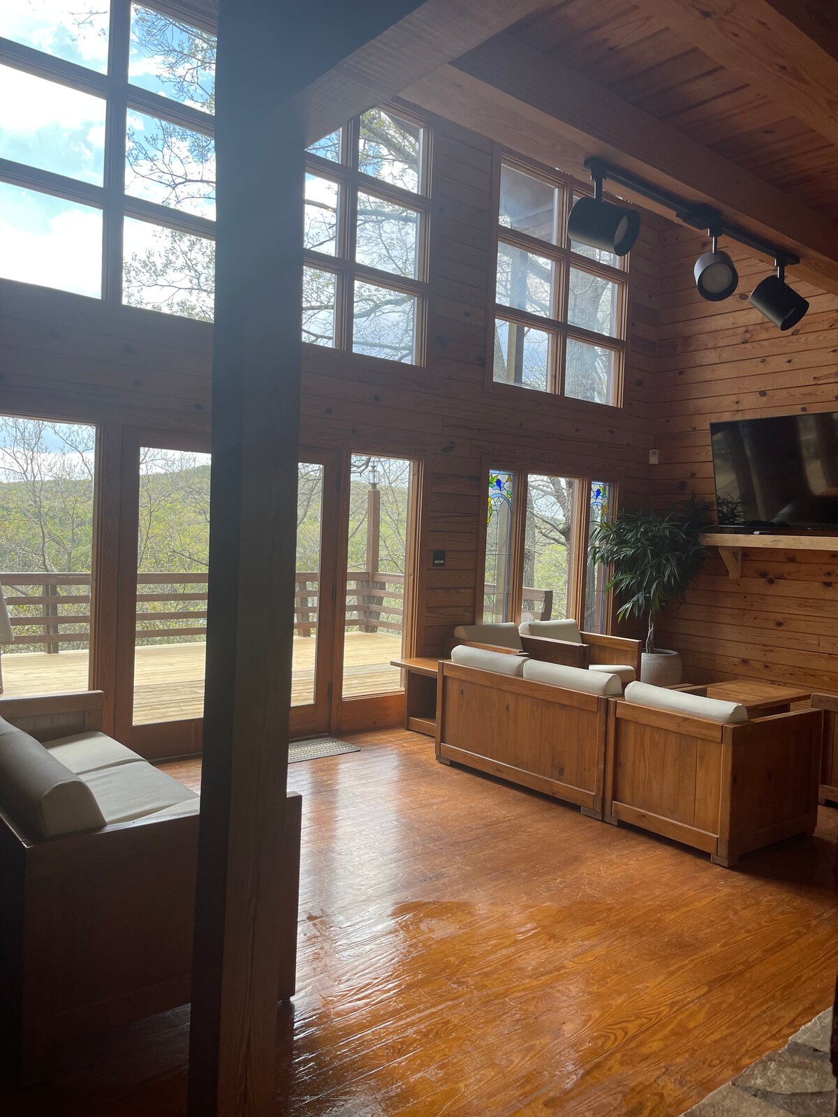 Nestled in the Uwharrie National Forest, “Star Buck Cabin” is a serene getaway that pairs outdoor adventure with cozy rustic comfort. Take in beautiful seasonal views of the farm while staying just 15 minutes from the North Carolina Zoo and Seagrove, famed for its pottery. After exploring, unwind in the hot tub, relax on the patio swing, or gather by the fire pit. Inside, enjoy your favorite TV show, relax by the fireplace, or even cook! Perfect for both adventure and relaxation.