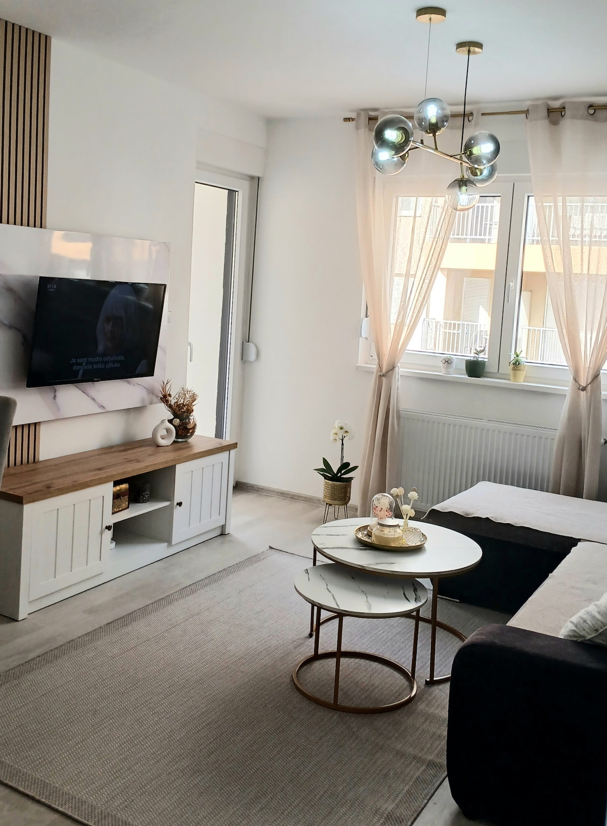 🏡 Topao i moderan stan za ugodan boravak Uživajte u prijatnom i lepo uređenom stanu koji odiše toplinom i komforom. Dnevni boravak sa udobnom ugaonom garniturom i ambijentalnim svetlom idealan je za opuštanje, dok je moderna kuhinja potpuno opremljena za sve vaše potrebe. Dekorativni detalji, biljke i topli tonovi stvaraju prijatnu atmosferu, a klima obezbeđuje komfor tokom cele godine.