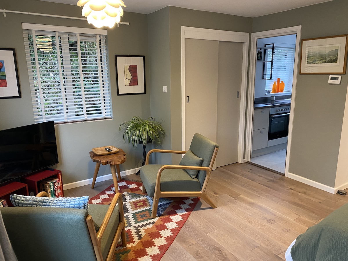 Garden Studio rộng 28m² mới được xây dựng của chúng tôi cách Sông Cẩm tuyệt đẹp 3 phút đi bộ và nằm ở vị trí thuận tiện gần trung tâm Cambridge. Không gian được thiết kế đẹp mắt này có giường cỡ king và ghế sofa sang trọng, được bổ sung bởi hệ thống sưởi dưới sàn và rèm che sáng, đảm bảo bầu không khí ấm cúng. Khu nghỉ dưỡng trong vườn này mang đến sự pha trộn hoàn hảo giữa sự thoải mái và yên tĩnh với khu vực chỗ ngồi ngoài trời riêng. Không có chỗ đỗ xe trong khuôn viên, tuy nhiên có thể đề xuất các khu vực đỗ xe gần đó.