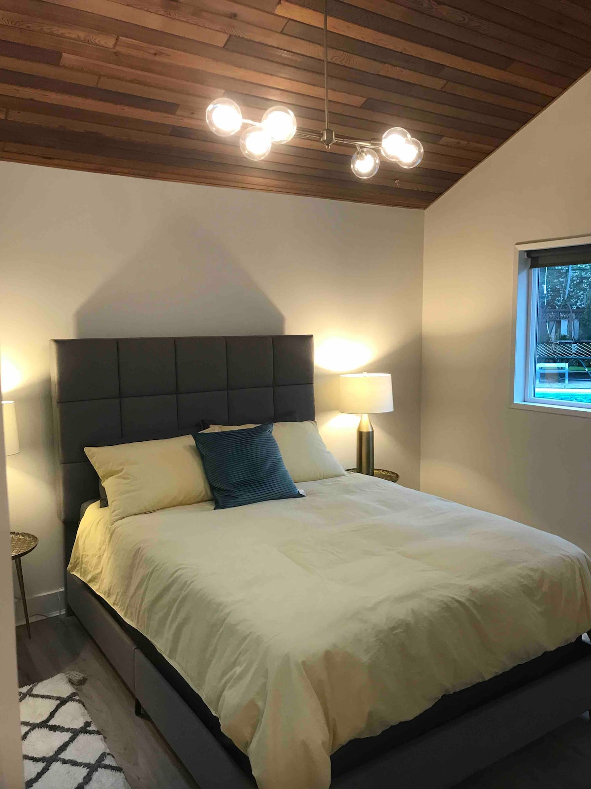 Phòng mới, sáng sủa, tầng chính với lối vào riêng và sân hiên riêng. Tận hưởng khu phố yên tĩnh của chúng tôi, được bao quanh bởi các công viên và chỉ cách bãi biển 1 km đi bộ. Tọa lạc tại vị trí thuận tiện với 5 phút lái xe đến phà, trung tâm thương mại, công viên nước, sân golf và nhà hàng, 30 phút đến sân bay và 40 phút đến trung tâm thành phố Vancouver. Phòng này ấm cúng, với hai giường queen và ghế sofa gấp. Chúng tôi sống trong ngôi nhà chính gắn liền nhưng khá riêng biệt và có sẵn nếu bạn cần bất kỳ điều gì.