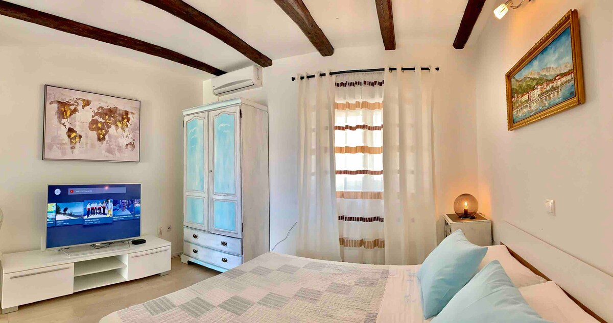 The apartment is located in surrounding center of Hvar city. It is situated in a small house structure with only one apartment surrounded by beautiful garden and it is fully furnished. You have the whole house for you. It has one bedroom with double bed and living room with a sofa. Sofa is not for sleeping. Kitchen is fully equipped without oven . Bathroom has a shower. Parking is not available.