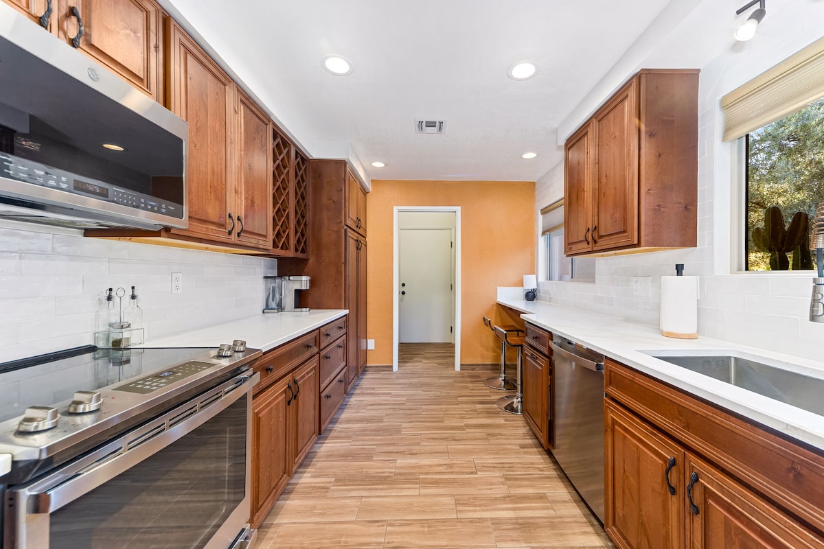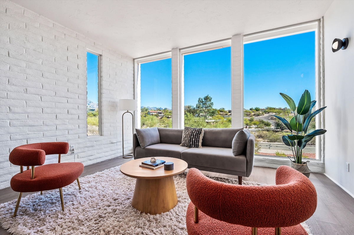 Ngôi nhà hiện đại tuyệt đẹp ở Catalina Foothills Ngôi nhà được tu sửa đẹp mắt này nằm trên một khu đất rộng một mẫu Anh ở Catalina Foothills được săn đón nhiều. Với 3 phòng ngủ master suite, mỗi phòng có phòng tắm hoàn toàn mới, vòi sen đứng và bàn trang điểm đôi, ngôi nhà này dễ dàng kết hợp sự thoải mái và thiết kế hiện đại. Vị trí lý tưởng, bạn chỉ cách khu mua sắm, nhà hàng cao cấp vài phút và 10–15 phút lái xe đến trung tâm thành phố, Đại lộ Đại học và Đại lộ số 4. Không gian, phong cách và vị trí - tất cả trong một gói tuyệt đẹp!