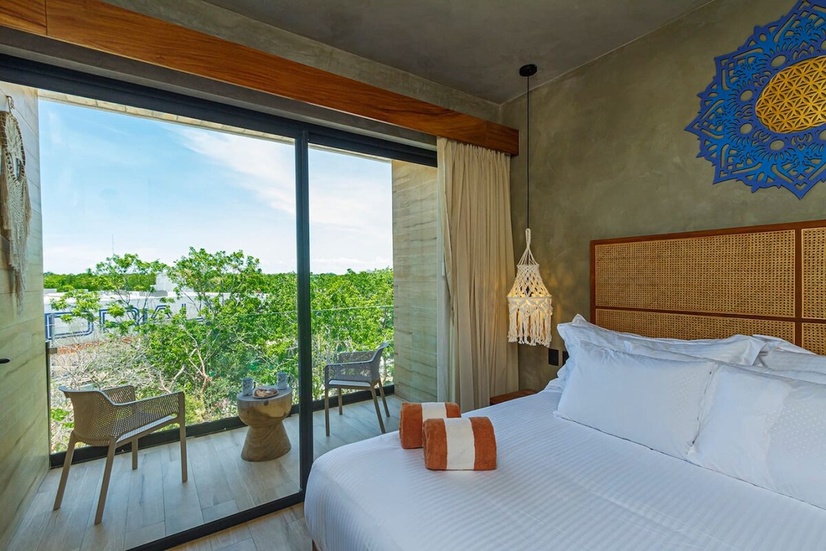 Chào mừng bạn đến với studio được thiết kế tỉ mỉ này ở Tulum Centro sôi động. Hoàn hảo cho du khách đi một mình hoặc cặp đôi, nó pha trộn sự thoải mái, phong cách và tiện lợi. Có giường cỡ king, TV thông minh, bếp đầy đủ tiện nghi và ban công riêng với tầm nhìn ra vườn. Tận hưởng hồ bơi trên tầng thượng, sân tennis có mái chèo và các tác phẩm nghệ thuật sắp đặt sôi động. Đặt phòng của bạn bao gồm dịch vụ trợ giúp đặc biệt miễn phí và ưu tiên sử dụng một số câu lạc bộ bãi biển tốt nhất ở Tulum.