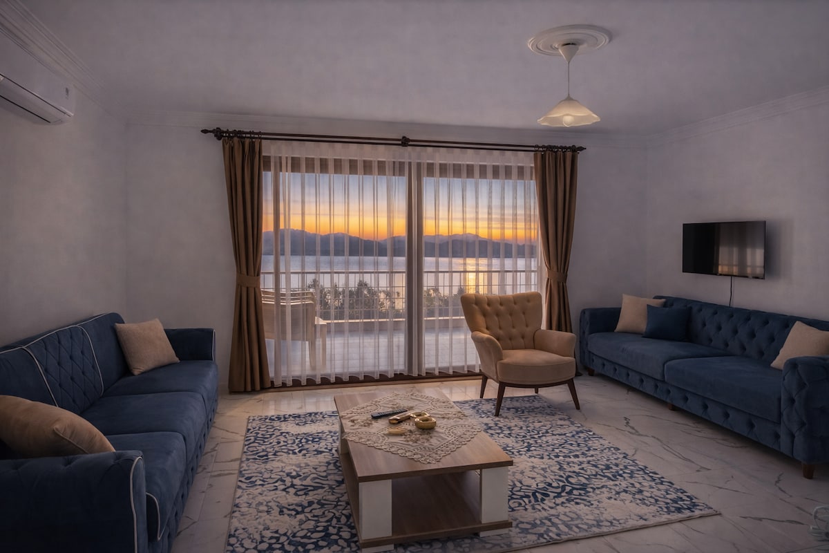 Căn hộ hai tầng với tầm nhìn ra biển tuyệt vời ở Turunc, Marmaris