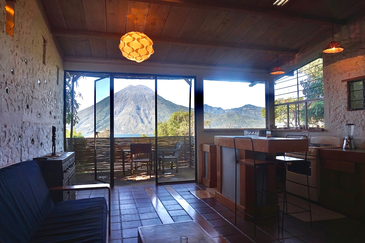 Chào mừng bạn đến với Vista Maya, lối thoát kỳ diệu bên hồ của chúng tôi trên bờ hồ Atitlán! Biệt thự cung cấp hai phòng ngủ rộng rãi, mỗi phòng có sân thượng riêng và nệm chỉnh hình cỡ king. Các sân thượng hoàn hảo để tập yoga, thiền định hoặc thư giãn với cà phê. Tận hưởng ghế sofa và võng ấm cúng hoặc võng đôi để rúc vào nhau! Chỉ cách mặt nước trong vắt 70 bước chân. Bến tàu mới, rộng lớn của chúng tôi vừa được hoàn thành, vì vậy bạn có thể bơi lội thư giãn, tắm nắng hoặc nhảy lên thuyền và bắt đầu cuộc phiêu lưu của mình.