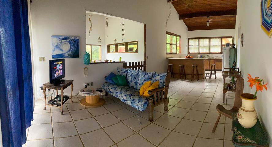 Ngôi nhà một tầng tuyệt vời cho cả gia đình, cách bãi biển Fortaleza ở Ubatuba chưa đầy 1 phút! - Chuồng đầy đủ. - 3 dãy phòng (phòng tắm đầy đủ) và 1 phòng ngủ - Phòng ăn và TV. (TV không có TV mở, chỉ có qua internet) -Varanda với mạng lưới. - Khu vực BBQ. -Wi-Fi. - Tương tác cho tối đa là 4 xe. - Chỉ dành cho thú cưng cỡ nhỏ cỡ trung bình. (phụ phí) Để biết thêm ảnh và video, hãy theo dõi @ ubahaus trên Instagram!
