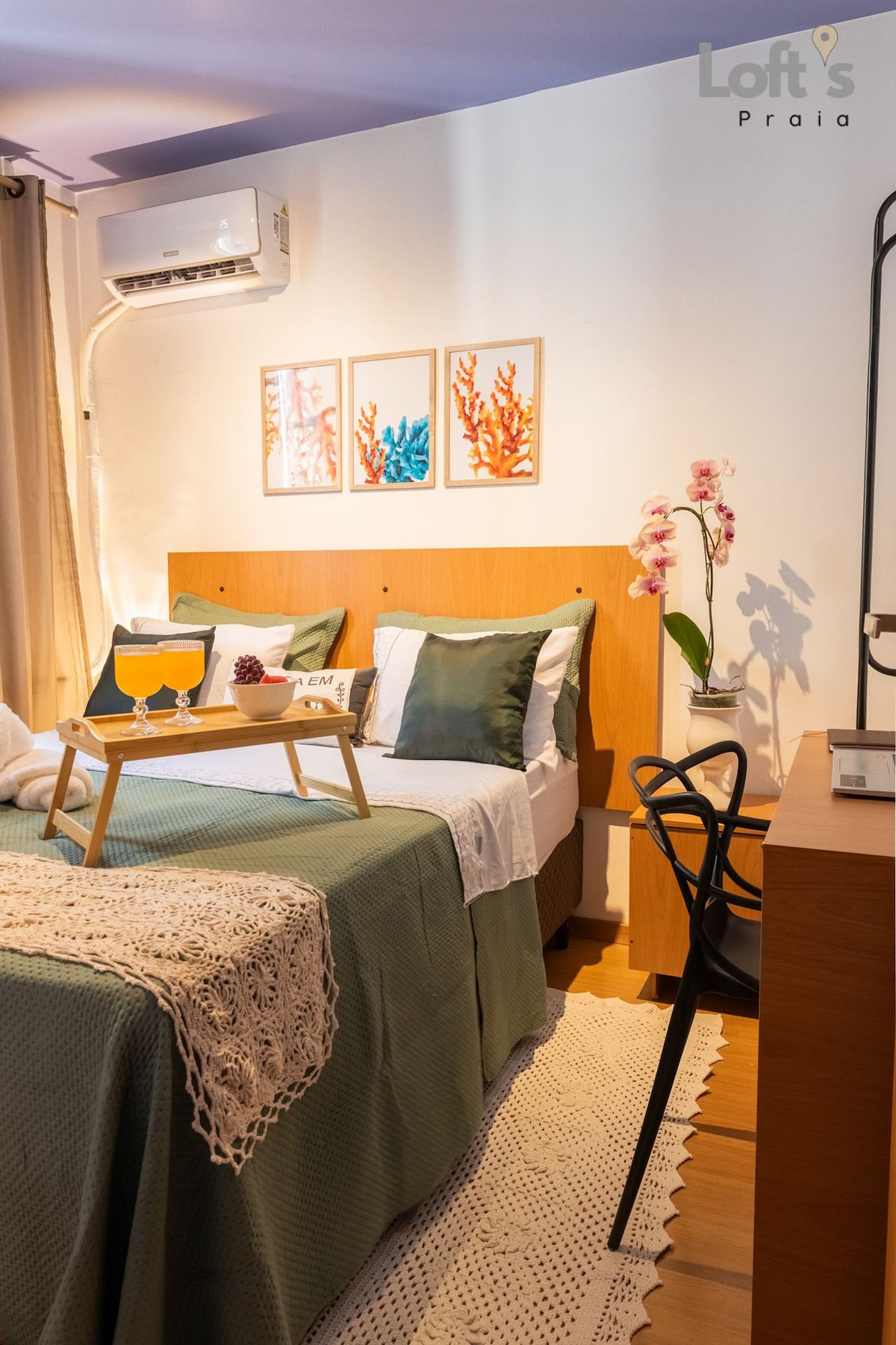 Studio Olive hoàn thiện và đầy quyến rũ ở tầng 7, với tầm nhìn đẹp và không khí ấm cúng. Giường cỡ king thoải mái với điều hòa không khí và TV thông minh đảm bảo sức khỏe. Bếp có đầy đủ dụng cụ, máy xay sinh tố, nồi chiên không dầu, máy làm bánh mì kẹp và máy pha cà phê, bởi vì ở đây, mọi chi tiết đều quan trọng. Lý tưởng cho tối đa 2 khách, không gian cung cấp một bộ đồ hoàn chỉnh với một khách sạn boutique, được thiết kế cho những người coi trọng sự thoải mái và thiết thực.