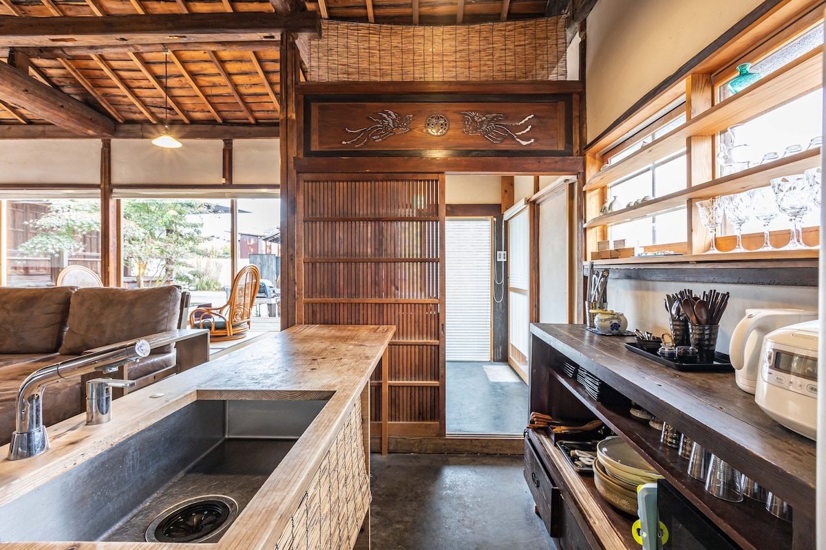 Đây là chỗ ở hoàn hảo cho các gia đình và nhóm, nơi bạn có thể tận hưởng một ngôi nhà truyền thống 100 năm tuổi hoàn toàn riêng tư. Bạn có thể thư giãn trong sự ấm áp của căn phòng gỗ theo phong cách Nhật Bản và cảnh quan nông thôn yên bình trải dài từ hiên nhà. Bếp, bồn tắm, nhà vệ sinh và các khu vực nước khác đã được cải tạo và sạch sẽ.Bạn có thể yên tâm và thoải mái ngay cả với trẻ nhỏ. Dụng cụ nấu ăn và các món ăn cũng có sẵn, vì vậy bạn có thể thưởng thức nấu ăn và dành thời gian quanh bàn với cả gia đình. Bạn cũng có thể nướng thịt trong khu vườn rộng rãi.Ăn uống giữa thiên nhiên với các nguyên liệu tươi ngon tại địa phương là một trải nghiệm đặc biệt. Một môi trường yên tĩnh với bầu trời đầy sao vào ban đêm và tiếng chim hót vào buổi sáng.Hãy nghỉ ngơi khỏi thói quen hàng ngày của bạn và làm mới tâm trí và cơ thể của bạn. Tận hưởng khoảng thời gian đặc biệt với gia đình trong không gian riêng tư hài hòa với thiên nhiên.