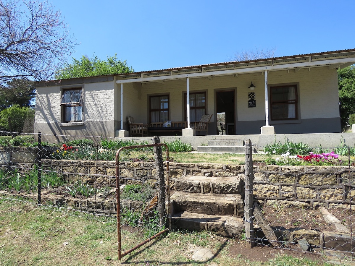 Oom Apie hướng Bắc, 3 phòng ngủ, Wifi, khu vườn nhỏ thân thiện với chó, có hàng rào, đáng yêu với phông nền Drakensberg, ao cá không có hàng rào. Nhà bếp đầy đủ tiện nghi, máy giặt, bãi đỗ xe ngoài đường. Nằm ở vị trí trung tâm đến các quán ăn, đối diện Khách sạn Rhodes cho TV thể thao, cách Trung tâm Thông tin đặt phòng vài giây - đi xe đạp địa hình, câu cá bằng ruồi, tranh Bushman, đi bộ đường dài trên núi và nấu ăn, các tuyến đường 4x4. Không có TV. Hệ thống sưởi mùa đông/chăn nóng. Rhodes là ngôi làng hoàn chỉnh duy nhất ở S.A. là Đài tưởng niệm Quốc gia.