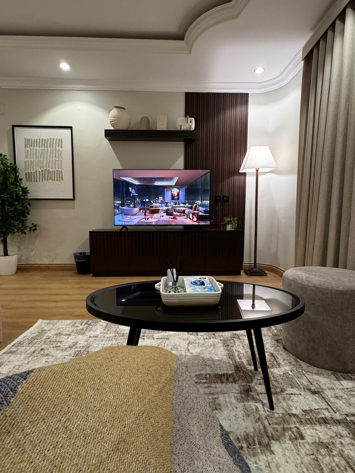 Tận hưởng căn hộ rộng rãi của chúng tôi ngay trung tâm Madinah, tọa lạc hoàn hảo trên đường King Abdullah,Al Madinah gần Nhà thờ Hồi giáo, nhà hàng, quán cà phê và địa điểm Tour khác. 1. Phòng khách sạch sẽ và rộng rãi với nội thất tầng trên cùng 2. TV màn hình phẳng lớn 3. 2 Phòng ngủ sạch sẽ với ga trải giường sang trọng 4. Wi-Fi miễn phí 5. Bếp đầy đủ tiện nghi với đồ nấu ăn cao cấp và khu vực ăn uống. 6. Hai phòng tắm riêng có vòi sen. 7. Chỗ đỗ xe miễn phí Hoàn hảo cho các cặp đôi và gia đình trong thời gian ở ngắn.