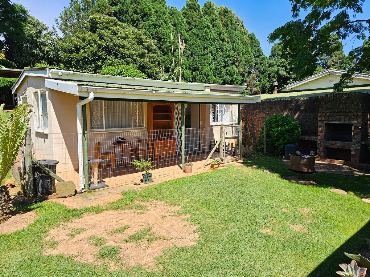 Nhà nghỉ thôn dã nằm trong khu vực Rosetta (giữa đường Nottingham và sông Mooi). Nhà nghỉ thôn dã trải thảm (gần nhà chúng tôi) có lối vào riêng, bao gồm: - một phòng ngủ (giường đôi), - phòng chờ, trạm làm việc, ghế ngồi thư giãn và giường ngủ, - bếp nhỏ và - khu vực tắm vòi sen. Sân riêng có bàn ghế ở sân hiên. Nằm trên một con sông nhỏ với sông Mooi cách nhà nghỉ thôn dã 250 m. Khách sẽ có thể chèo thuyền, đi bộ hoặc nghỉ ngơi trên sông.