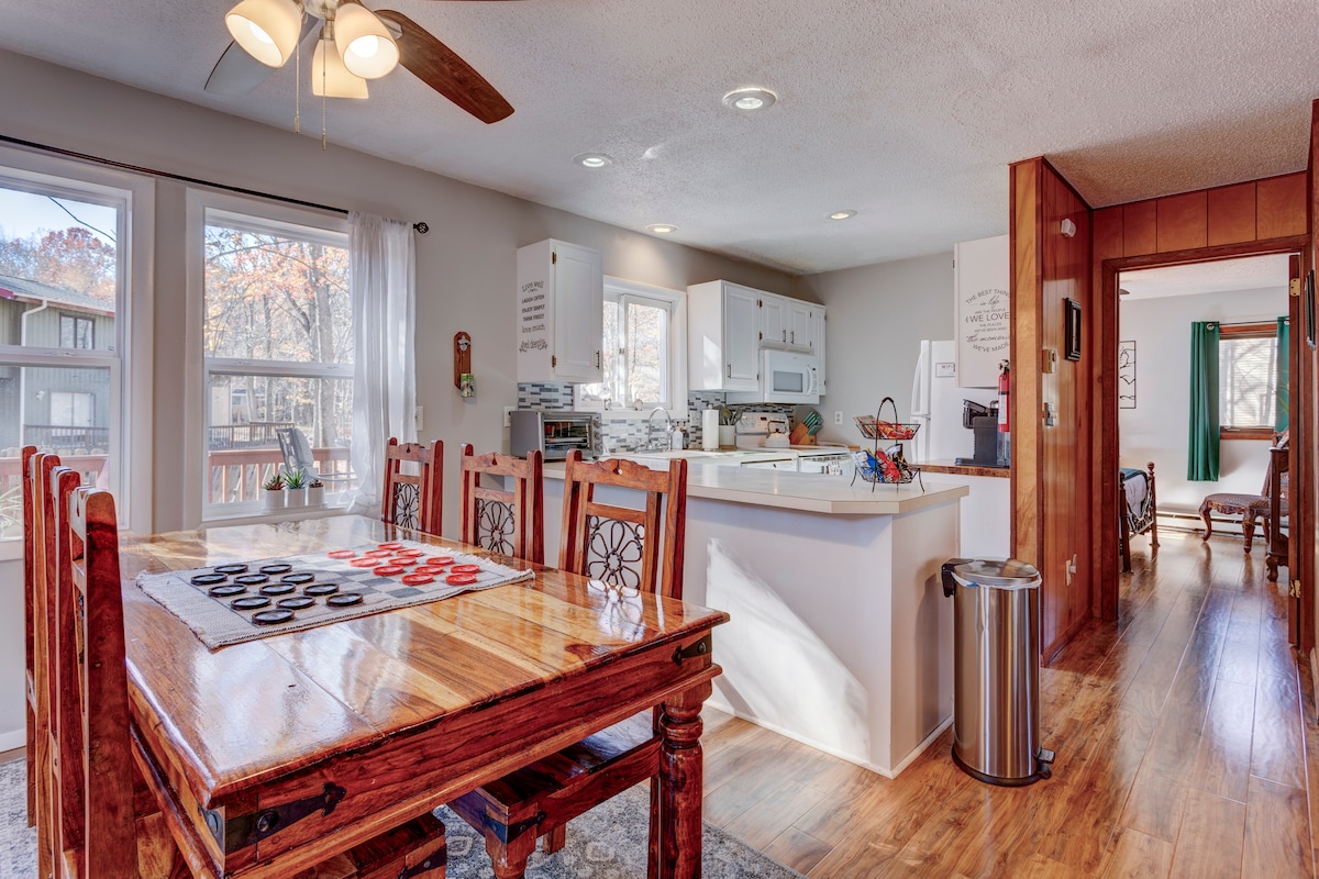 Xin chào, Chào mừng bạn đến với Raccoon Retreat! Đây là một ngôi nhà mà bạn sẽ có thể đến để xả hơi, thư giãn và kết nối lại với gia đình, bạn bè và tất cả những gì thiên nhiên cung cấp. Nhà nằm trong Khu vực giải trí quốc gia Delaware Water Gap . Tại đây bạn sẽ có cơ hội tận dụng các con đường mòn đi bộ đường dài, thác nước, bơi lội, trượt cáp, câu cá, cưỡi ngựa, chèo xuồng và chèo thuyền kayak, cũng như trượt tuyết hoặc đi xe trượt tuyết trong mùa tuyết. Mặc dù bạn có thể trải nghiệm thiên nhiên ở đây, bạn chỉ cách các nhà hàng, sòng bạc, khu mua sắm và cả công viên nước một quãng lái xe ngắn. Toàn bộ ngôi nhà là của bạn! Ngôi nhà ba tầng của chúng tôi nằm trên một khu đất có rừng. Trong trường hợp bạn chỉ muốn đi nghi ̉ ơ ̉ dưới đây, chúng tôi đã thiết kế không gian để cảm thấy ấm cúng và ấm áp. Bạn sẽ tìm thấy một nhà bếp đầy đủ sẵn sàng để bạn chuẩn bị một số bữa ăn nấu tại nhà, ba phòng ngủ, hai phòng tắm, một bồn tắm ngâm và một boong trong nhiều dặm! Nhà có đường lái xe riêng với rất nhiều không gian cho tối đa là 5 xe. Theo dõi chúng tôi trên Instagram @raccoonretreat Trong khi bạn tận hưởng thời gian lưu trú, chúng tôi sẽ luôn sẵn sàng để bạn liên hệ khi bạn cần chúng tôi bất cứ lúc nào từ xa. Vui lòng tôn trọng nhà của chúng tôi. Rất nhiều trái tim đã đi vào tạo ra không gian này và hy vọng rằng mỗi khách mới sẽ được tận hưởng không gian như thể họ là những người đầu tiên!