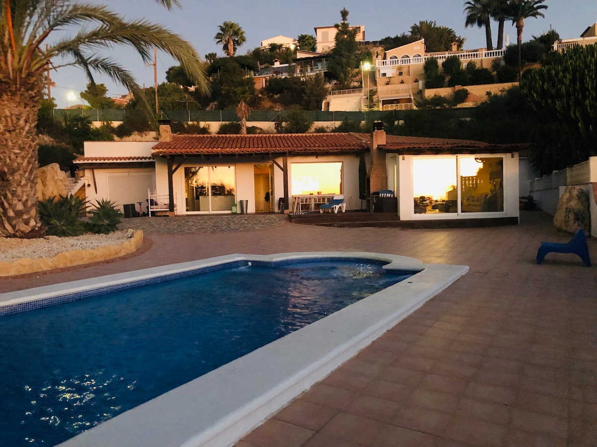 Nhà tị nạn có hồ bơi riêng, nằm cạnh đường mòn đi bộ đường dài và các điểm leo núi của Cabezó de Or y Cuevas de Canelobre. Bạn có thể tận hưởng sự yên tĩnh, thiên nhiên trọn vẹn và tầm nhìn toàn cảnh ra biển và núi cùng một lúc . Lý tưởng để dành cuối tuần để chơi thể thao hoặc nghỉ ngơi. Nơi lý tưởng để nướng thịt trong môi trường riêng tư. Chỉ cách bãi biển Campello và San Juan Alicante 12 - 15 km. Nhà nằm trong khuôn viên của chỗ nghỉ của chúng tôi.