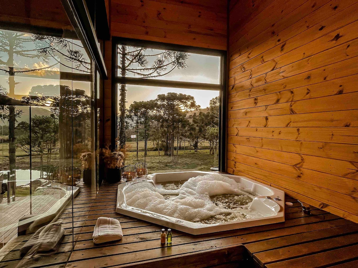 Trải nghiệm những khoảnh khắc khó quên tại địa điểm độc đáo và lý tưởng này cho các cặp đôi và gia đình, nằm ở Morro da Igreja, tiếp xúc với thiên nhiên với độ cao xấp xỉ 1500 mét và với tầm nhìn ngoạn mục ra thung lũng, lý tưởng cho các bài đăng và phát trực tuyến của bạn Nhà gỗ chalet của chúng tôi được thiết kế để mang lại sự thoải mái, sang trọng và riêng tư cho khách, với nét lãng mạn và hiện đại. Với một bồn tắm nước nóng với liệu pháp sắc ký hướng ra thung lũng và một bể sục trên boong, tất cả đều được làm nóng bằng khí đốt.