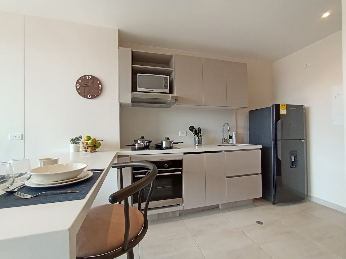 **VUI LÒNG ĐỌC MÔ TẢ, QUY TẮC VÀ CÁC ĐIỂM NỔI BẬT KHÁC TRƯỚC KHI ĐẶT PHÒNG**. Đó là một nơi ở sạch sẽ, dễ chịu, thoải mái và an toàn. Căn hộ kiểu gác xép hiện đại, 1 giường đơn Hoàn hảo cho thời gian ở ngắn, trung bình hoặc dài hạn. Cách Chợ tươi sống Carulla hai dãy nhà, cách 100 dãy nhà. Với nhân viên hỗ trợ 24 giờ, bãi đỗ xe trong tòa nhà, phòng tập thể dục và một phòng chờ kinh doanh với internet để bạn có thể tổ chức các cuộc họp kinh doanh.