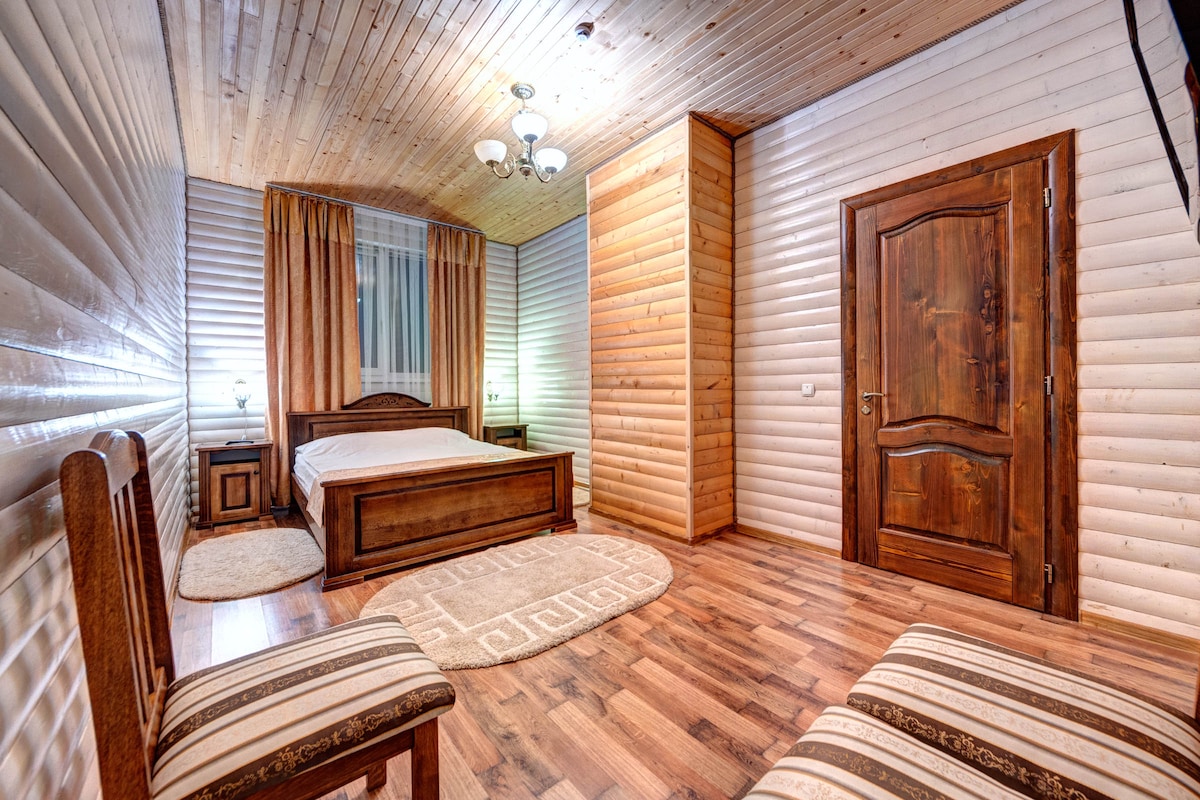 Thư giãn tại một nơi ấm cúng và đầy phong cách. Tại đây bạn có thể quên đi sự hối hả và nhộn nhịp hàng ngày kết hợp với vẻ đẹp của những ngọn núi đẹp như tranh vẽ và không khí trong lành. Rìa núi sẽ mê hoặc bạn ngay từ cái nhìn đầu tiên và bạn sẽ muốn quay lại với chúng tôi nhiều lần) chúng tôi có một điểm cộng lớn vì không có khách du lịch gần đó, và bạn có thể tận hưởng kỳ nghỉ của mình, lò sưởi sẽ sưởi ấm bạn trong một buổi tối lạnh lẽo và tạo ra một bầu không khí khó quên) và chúng tôi cũng có tất cả đồ nội thất làm bằng hạt tự nhiên mang lại bầu không khí tuyệt vời,chúng tôi đang chờ bạn!)