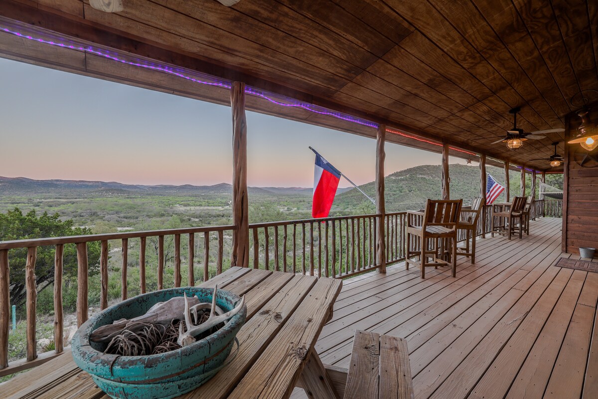 Enjoy amazing views overlooking Garner State Park in a cozy cabin nestled atop a hill on 44 acres of private fenced land. This cabin has a 360 degree porch to enjoy the breeze and afternoon shade. Relax in the cabin with a fully-stocked kitchen or cool off in the Frio River with a 3-minute drive to the Garner main entrance. Leakey, Concan, and Frio River swimming holes are all within 10 minutes. In the evening, roast marshmallows in the fire pit and marvel at the starlit sky.