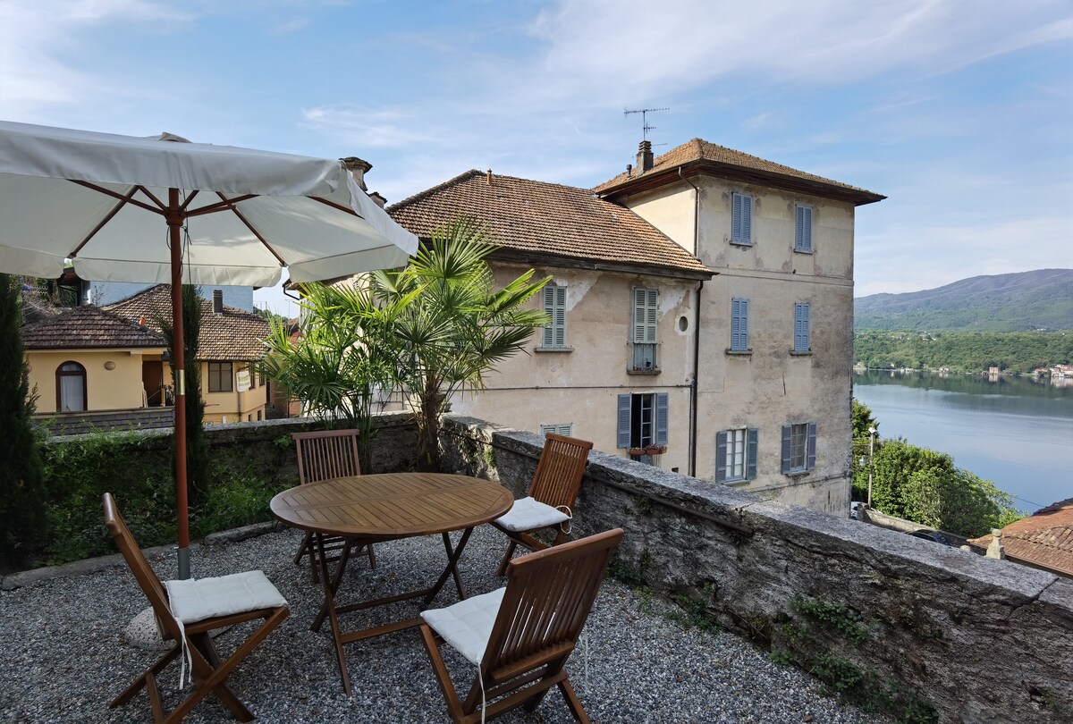 Căn hộ "Suite lãng mạn Bocciola" tự hào có vị trí tuyệt vời trên những ngọn đồi phía đông của Hồ Orta: từ sân riêng của bạn, bạn sẽ tận hưởng tầm nhìn tuyệt đẹp ra Hồ, Đảo S. Giulio và Núi Rosa hùng vĩ. Xung quanh nhà có những khu vườn tươi tốt và những ngôi nhà cổ lãng mạn! Hồ chỉ cách đây 10 phút lái xe (2 bãi biển công cộng đẹp). Quán bar và cửa hàng ở khoảng cách đi bộ: thậm chí còn có một quán cà phê đẹp ngay cạnh nhà bạn!
