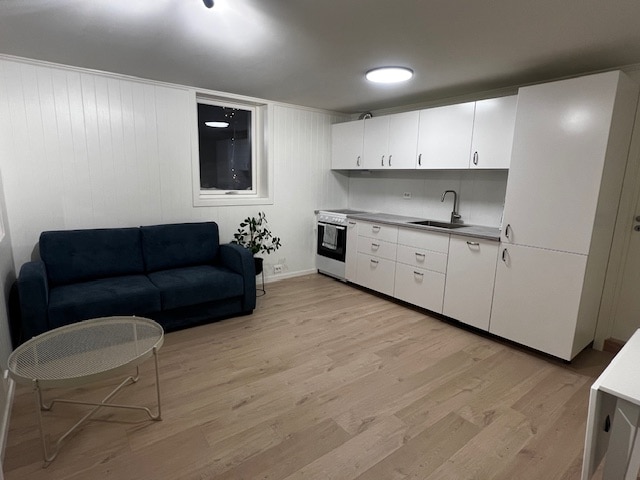 Nyoppusset og moderne leilighet – perfekt for korte og lengre opphold! Leiligheten passer perfekt for par, små familier eller jobbreisende. Leiligheten har ett lyst soverom med komfortabel seng, samt sovesofa i oppholdsrommet, som gir soveplasser til inntil 4 personer. Leiligheten ligger i et rolig område med enkel tilgang til kollektivtransport, matbutikk, bystrand, utleie-badstu og flotte turområder. Enten du er på ferie eller jobb, tilbyr denne leiligheten en komfortabel og praktisk base.