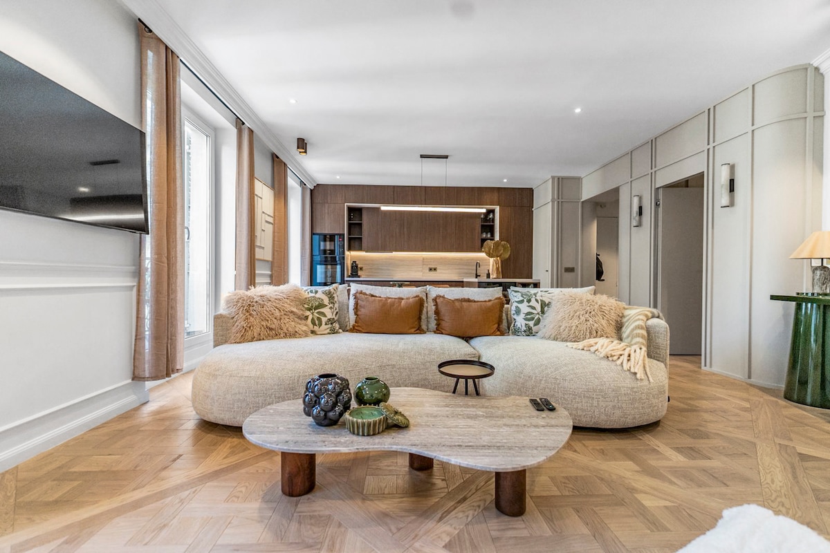 Découvrez cet appartement d'exception de 125m² à St-Germain, proche du jardin du Luxembourg et d'Odéon. Oniri vous accueille dans un lieu d'histoire et de patrimoine, entouré de magasins traditionnels, de boutiques de créateurs , de librairies anciennes et des restaurants renommées, à la fois calmes et animés, mêlant luxe et histoire. Au 1er étage avec ascenseur, entièrement climatisé et avec un service de ménage quotidien, le lieu a été pensé pour votre confort et peut accueillir 8 personnes.