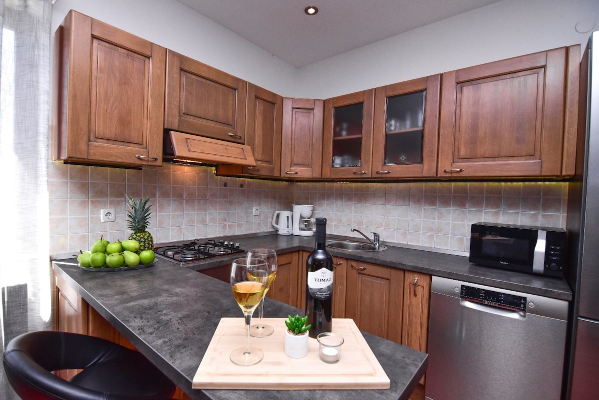 Trải nghiệm ngôi nhà đẹp và độc đáo nhất ngay trung tâm lịch sử của Fažana — một căn hộ ba phòng ngủ rộng rãi có từ thế kỷ 19 chỉ cách biển vài bước chân. Mỗi phòng ngủ có một phòng tắm khép kín riêng, ngoài ra còn có thêm một nhà vệ sinh ở tầng trệt. Điều hòa không khí đầy đủ, với các tiện nghi hiện đại, dịch vụ giặt ủi và ủi quần áo, và các chi tiết chu đáo xuyên suốt. Phù hợp với gia đình và thú cưng. Được xếp hạng 4 sao chính thức.