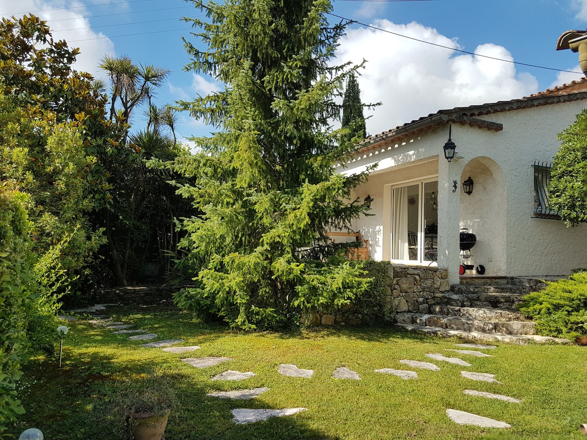 Petit STUDIO très bien équipée avec entrée et parking privé dans une grande Propriété avec piscine et jacuzzi chauffés du 10 avril au 30 octobre . La piscine extérieur et jacuzzi ainsi que le jardin sont partagés mais assez grand pour profiter chacun son espace de tranquillité . Je vis dans la bastide principale . Un Havre de Paix entouré d oliviers centenaires . A 35 minutes de l aéroport de Nice et divers villages provençaux et 14km de Cannes . Tele grand écran /abonnement Netflix