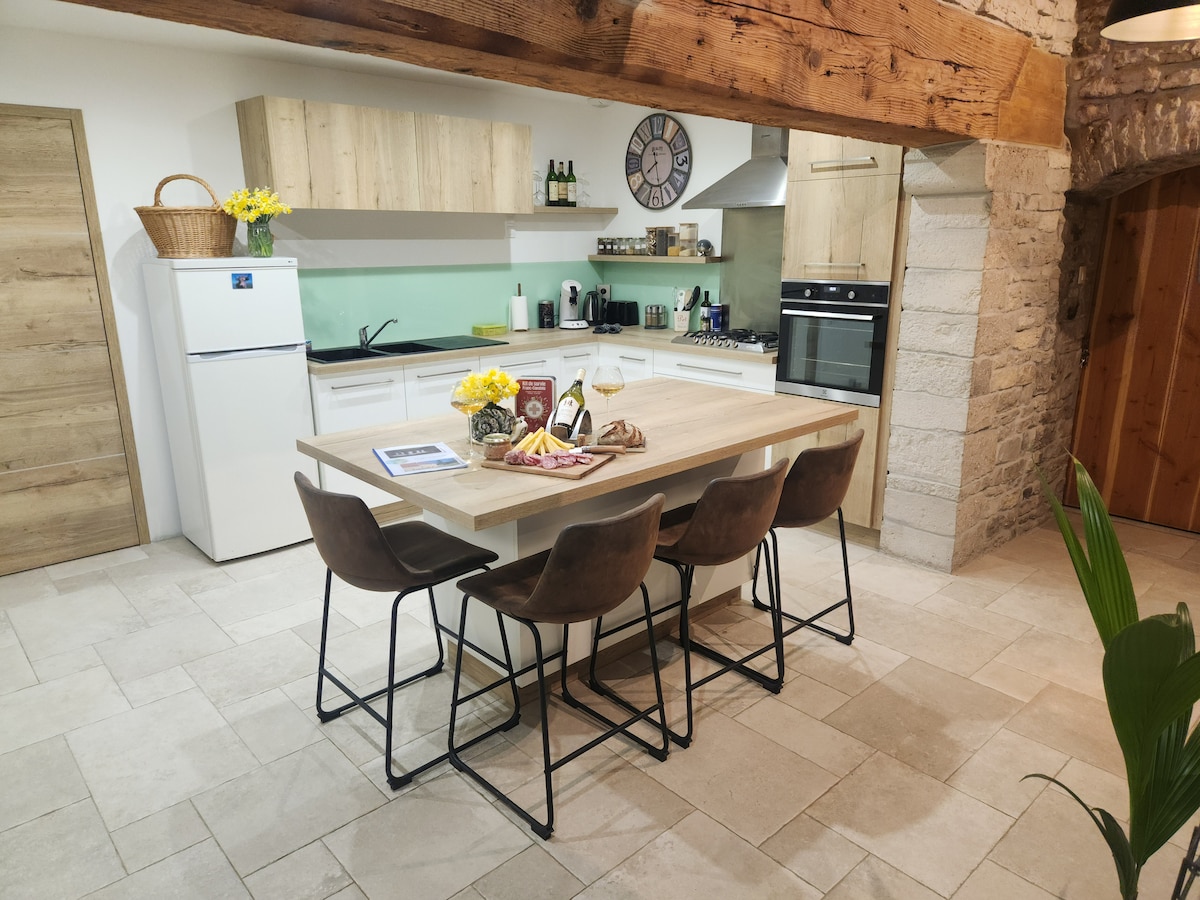 Căn hộ 60 m2 được tân trang lại đẹp mắt với đá lộ thiên và lò sưởi thế kỷ 16. Thân thiện, ấm áp và hiện đại cùng một lúc với tất cả các tiện nghi hiện đại. Bạn sẽ tìm thấy : nhà bếp được trang bị mở ra một phòng khách thoải mái và rộng rãi với TV và Wifi. Phòng ngủ riêng với 1 giường 160, phòng tắm có máy sấy khăn tắm. Lối vào riêng, bãi đỗ xe và sân thượng. Gỗ được cung cấp.