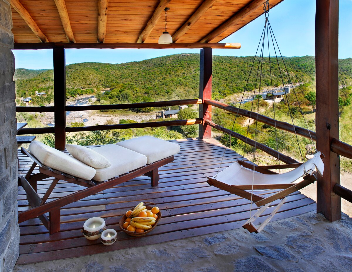 Chúng tôi giới thiệu địa điểm này với nhiều thiết kế hơn của Traslasierra. Nằm trên một ngọn đồi, bạn sẽ ở trung tâm của ngọn núi và cũng cách San Javier 10 phút. Bạn sẽ có thể đi bộ 5 phút đến con lạch thông qua lối đi riêng. Dưới chân bạn, bạn sẽ có những vườn nho tốt nhất ở San Javier... và tất cả đều nằm trong một dãy núi rộng 700 ha với vô số con đường mòn để khám phá và đi bộ.